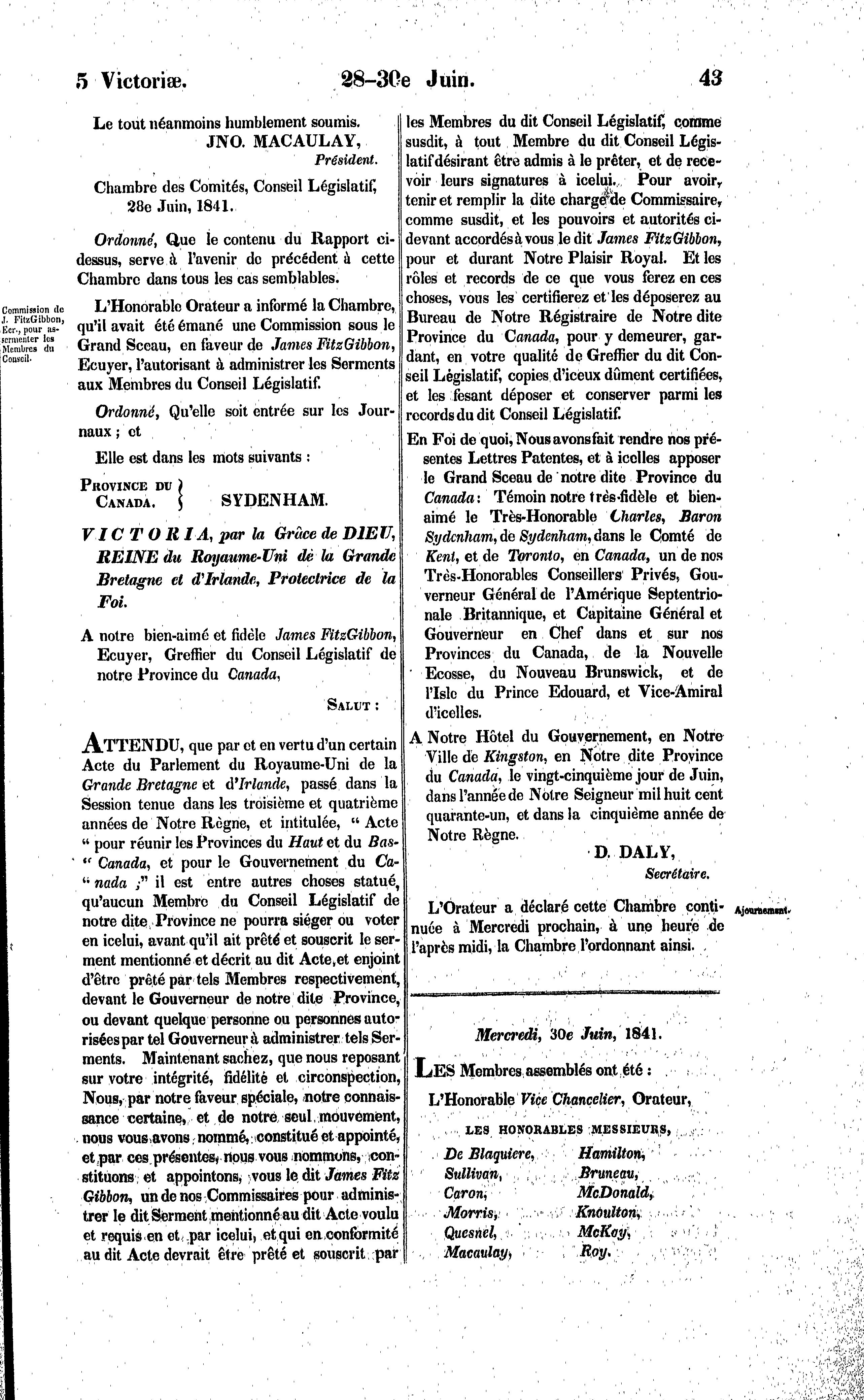 Journaux du Conseil législatif de la Province du Canada ... étant la première session du premier parlement provincial, 1841 : 1841
