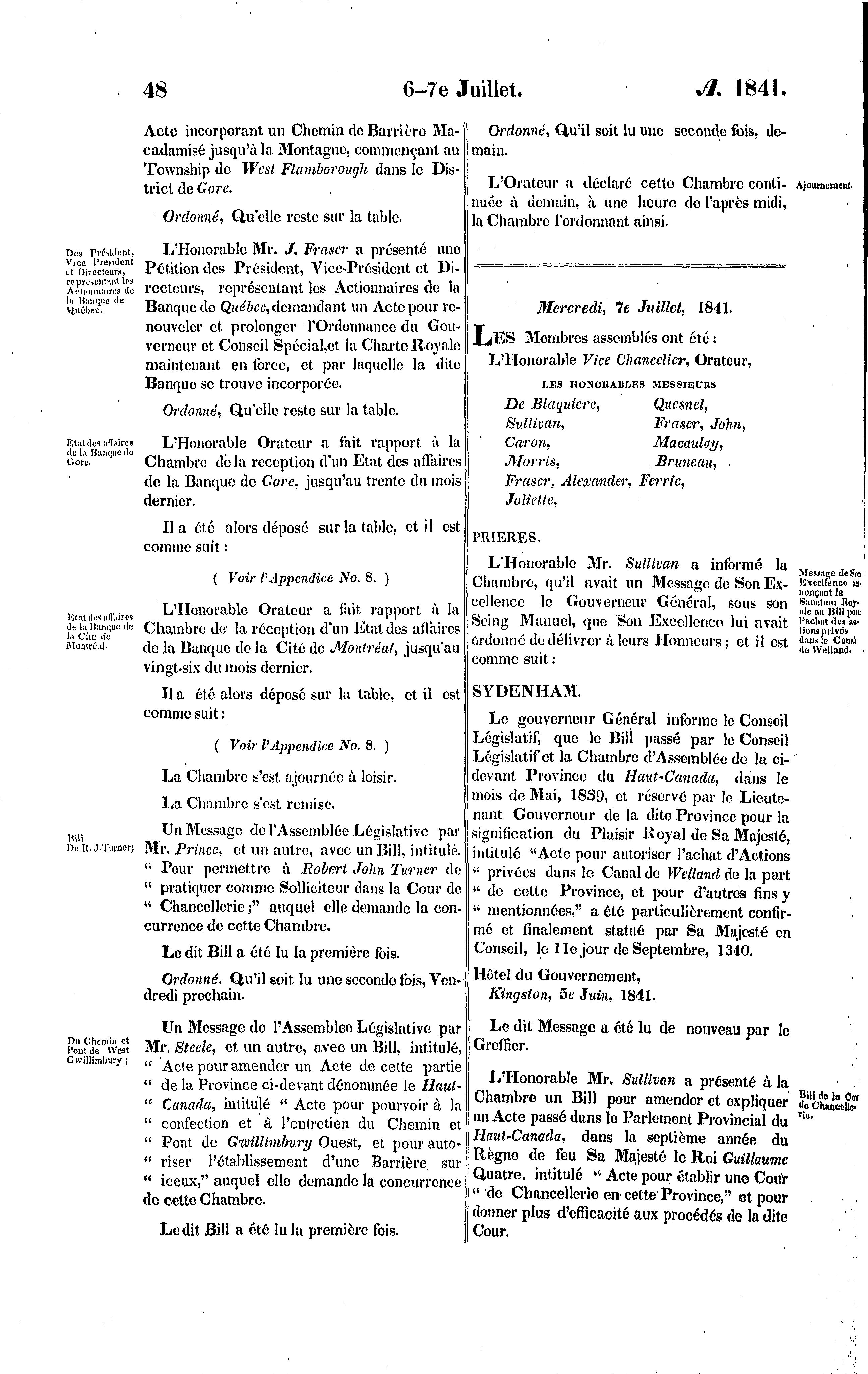 Journaux du Conseil législatif de la Province du Canada ... étant la première session du premier parlement provincial, 1841 : 1841