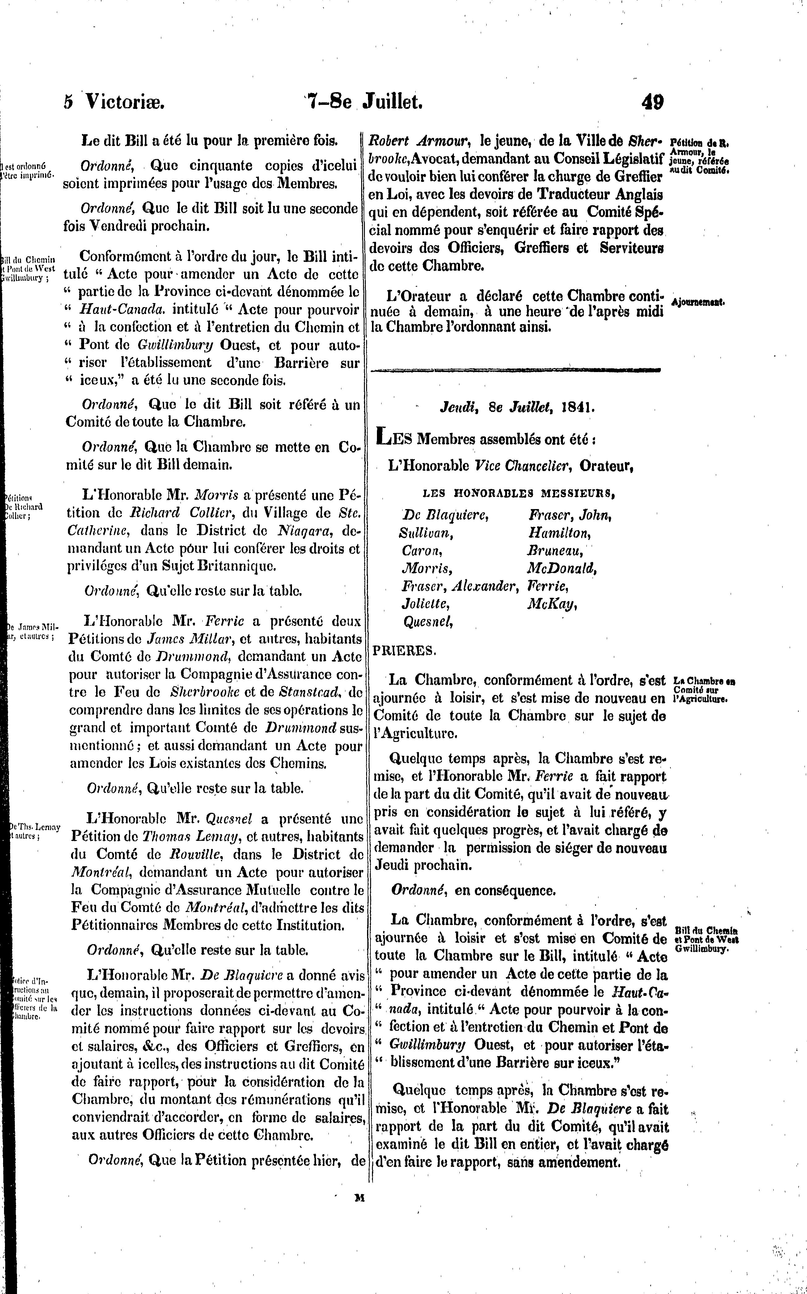 Journaux du Conseil législatif de la Province du Canada ... étant la première session du premier parlement provincial, 1841 : 1841