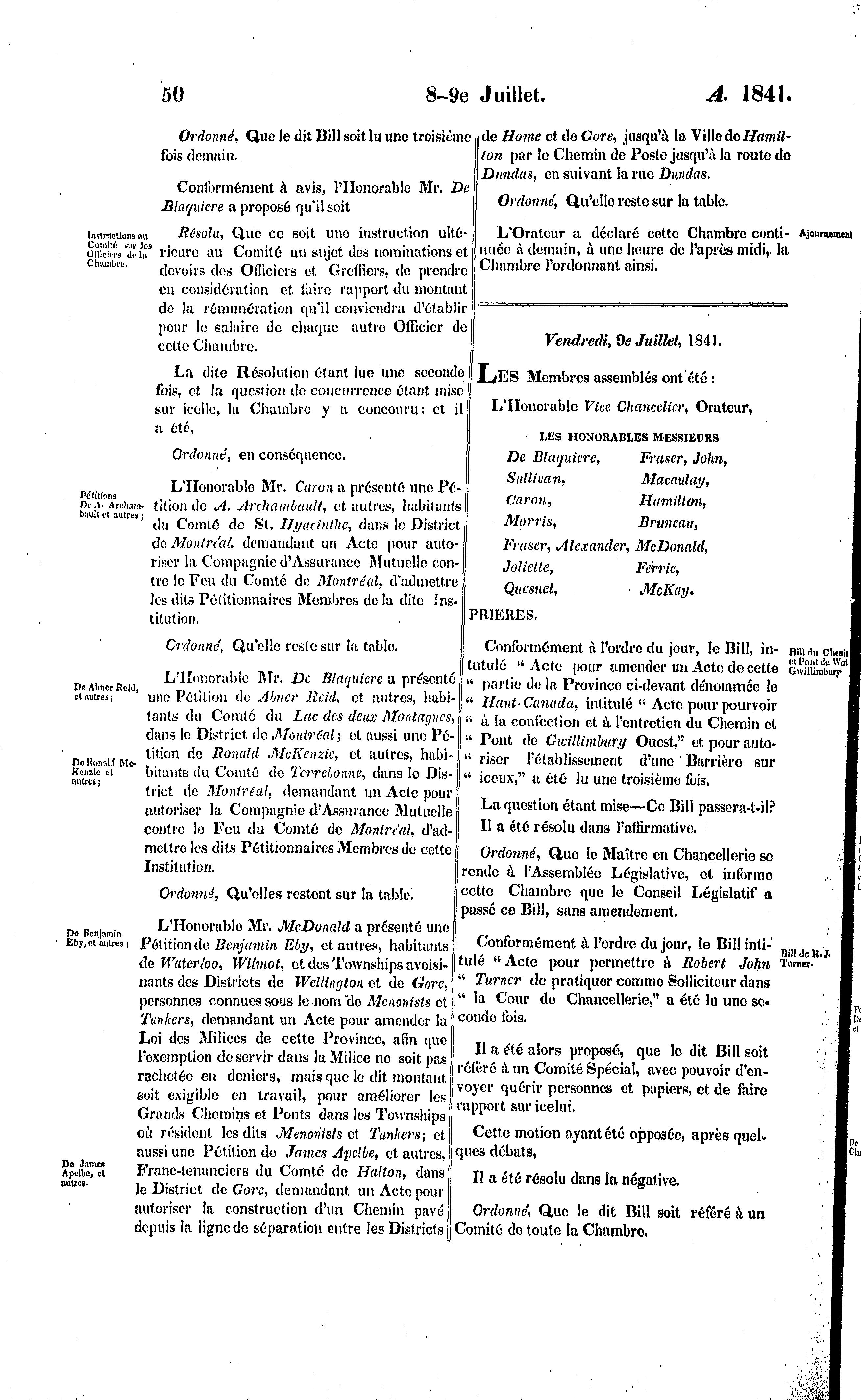 Journaux du Conseil législatif de la Province du Canada ... étant la première session du premier parlement provincial, 1841 : 1841