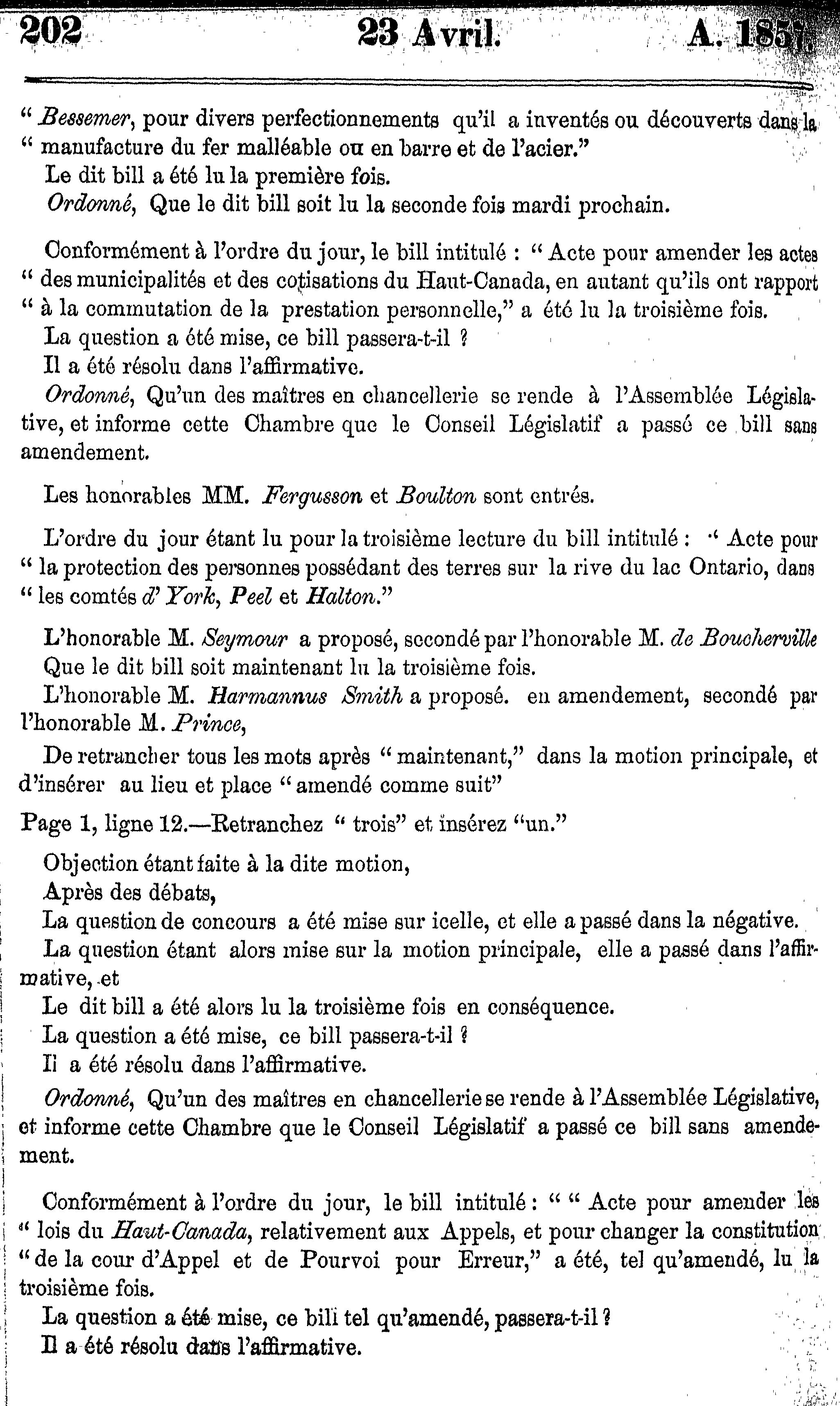 Journaux du Conseil législatif de la Province du Canada ... étant la troisième session du cinquième parlement provincial, 1857 : 1857