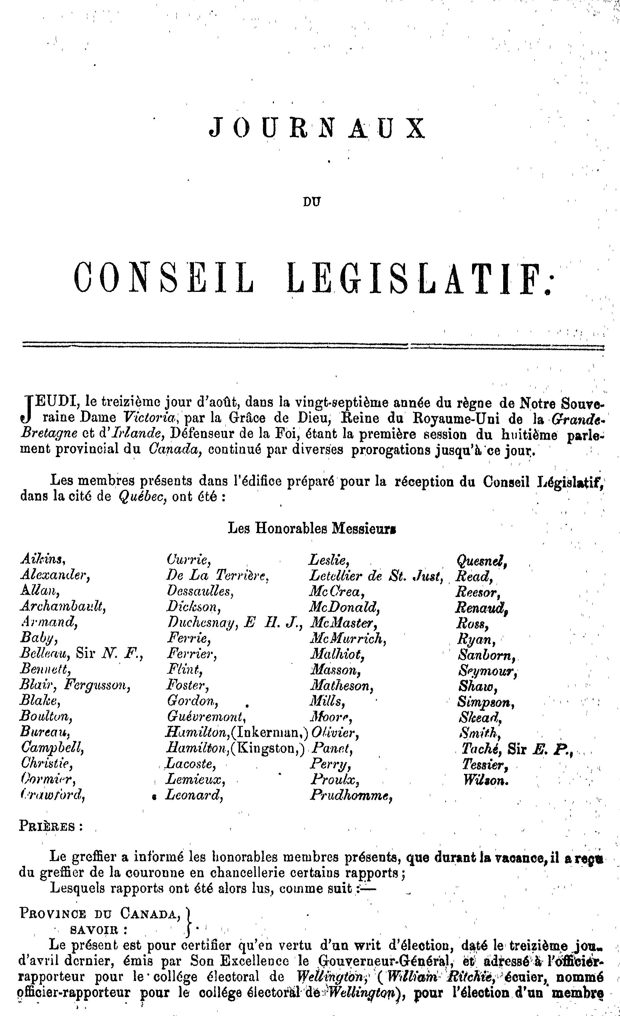 Journaux du Conseil législatif de la Province du Canada ... étant la première session du huitième Parlement provincial, 1863 : 1863