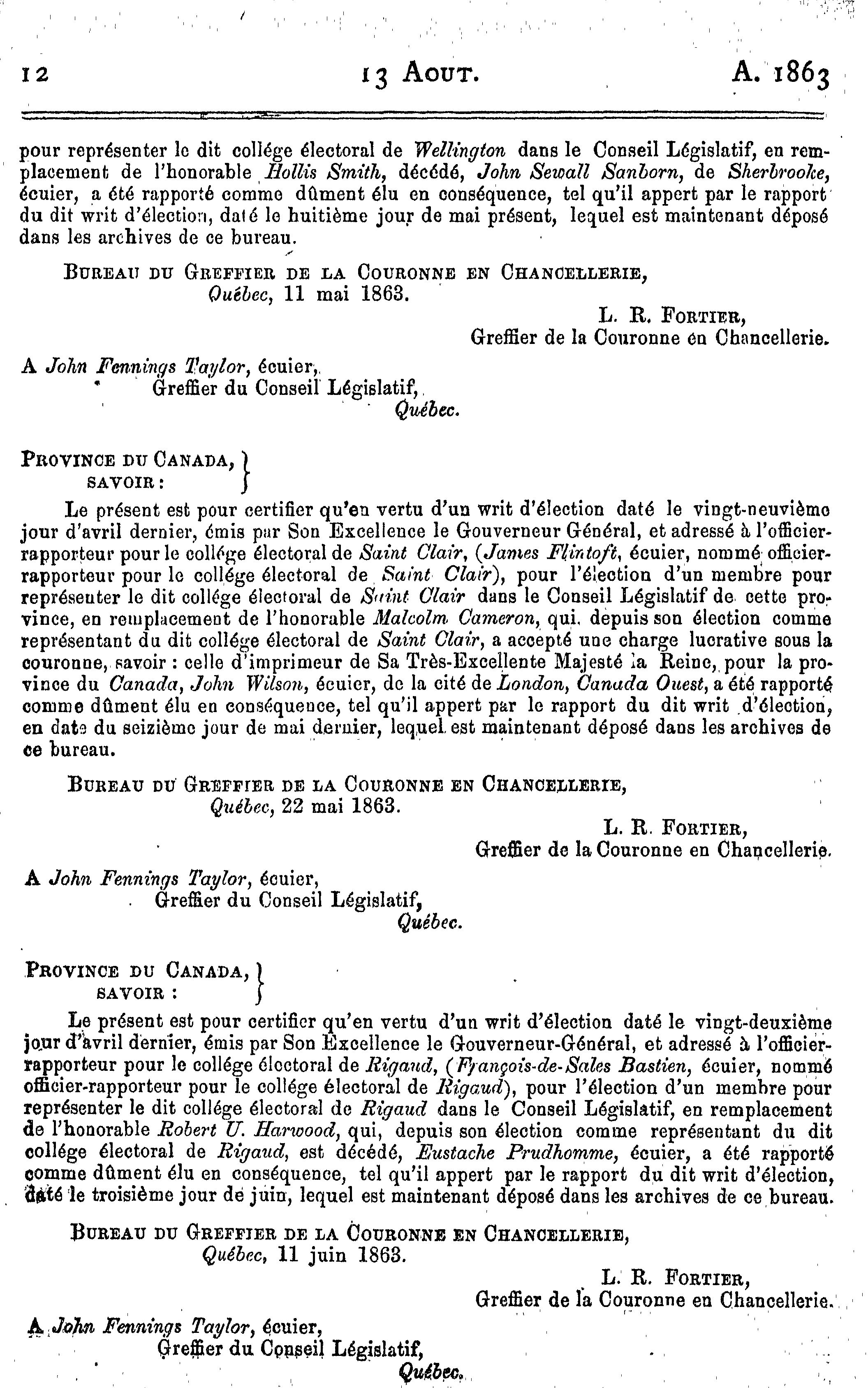 [Québec : Queen's Printer, 1863]