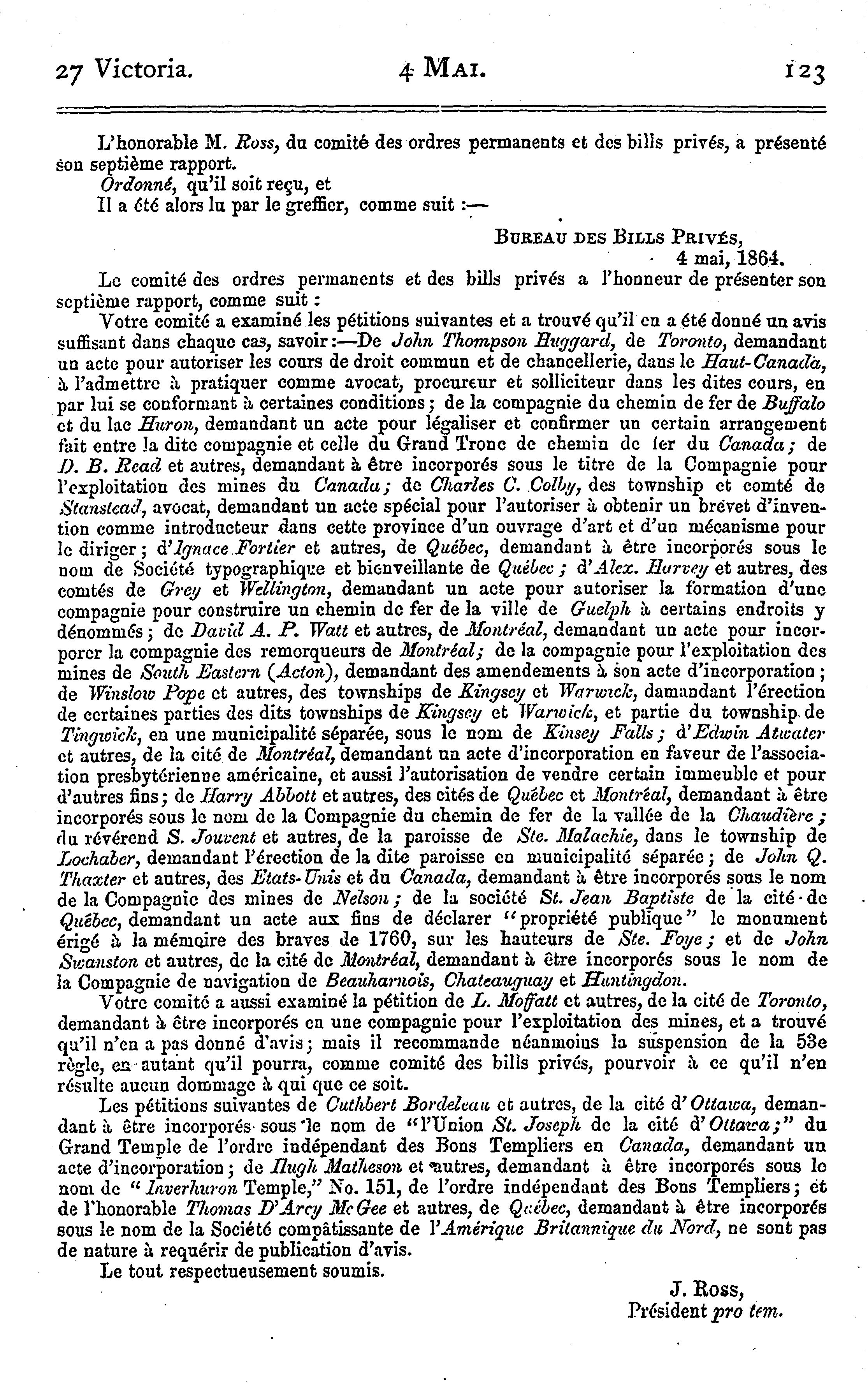 Journaux du Conseil législatif de la Province du Canada ... étant la seconde session du huitième Parlement provincial, 1864 : 1864