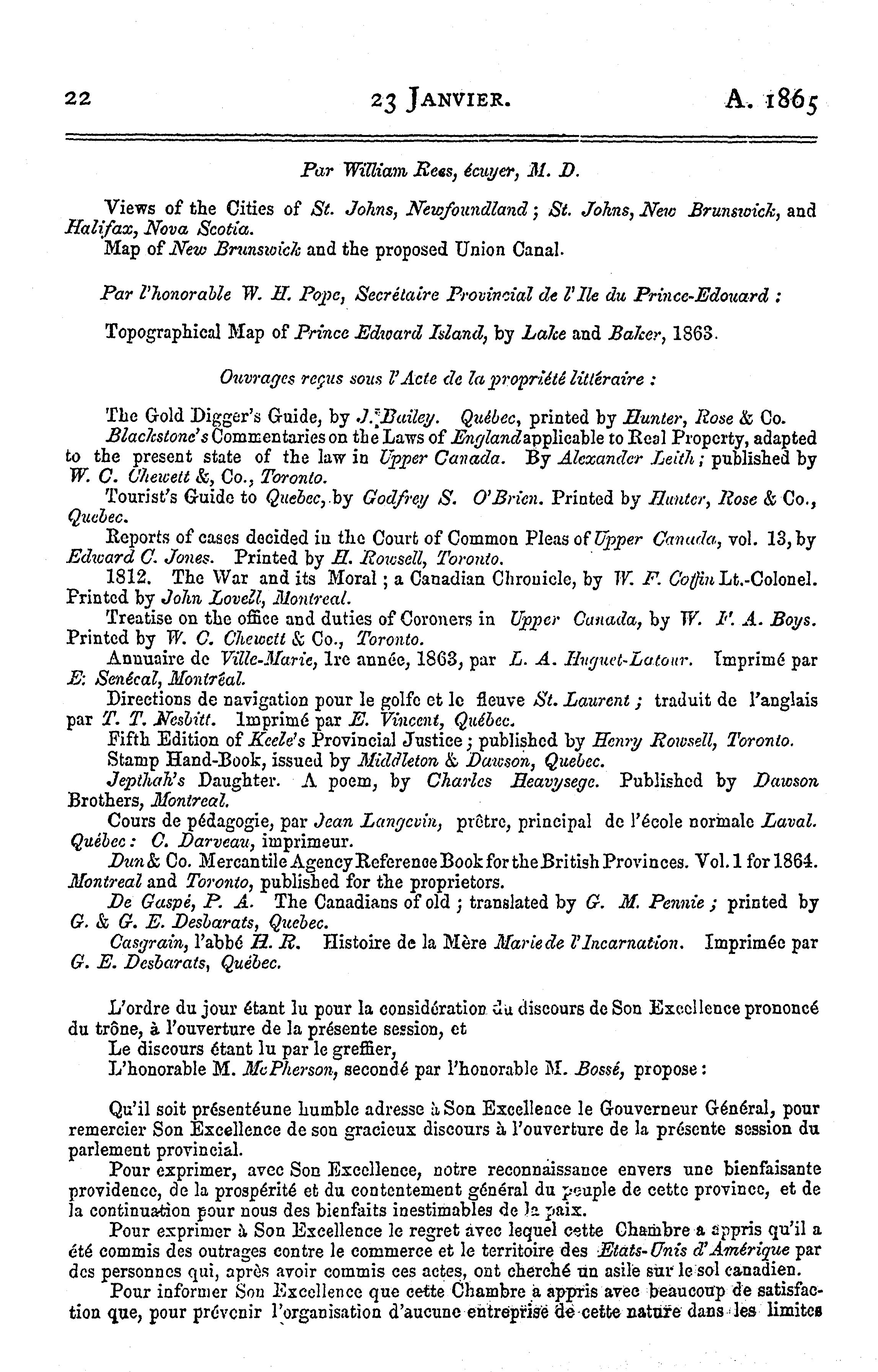 Journaux du Conseil législatif de la Province du Canada ... étant la troisième session du huitième Parlement provincial, 1865 : 1865