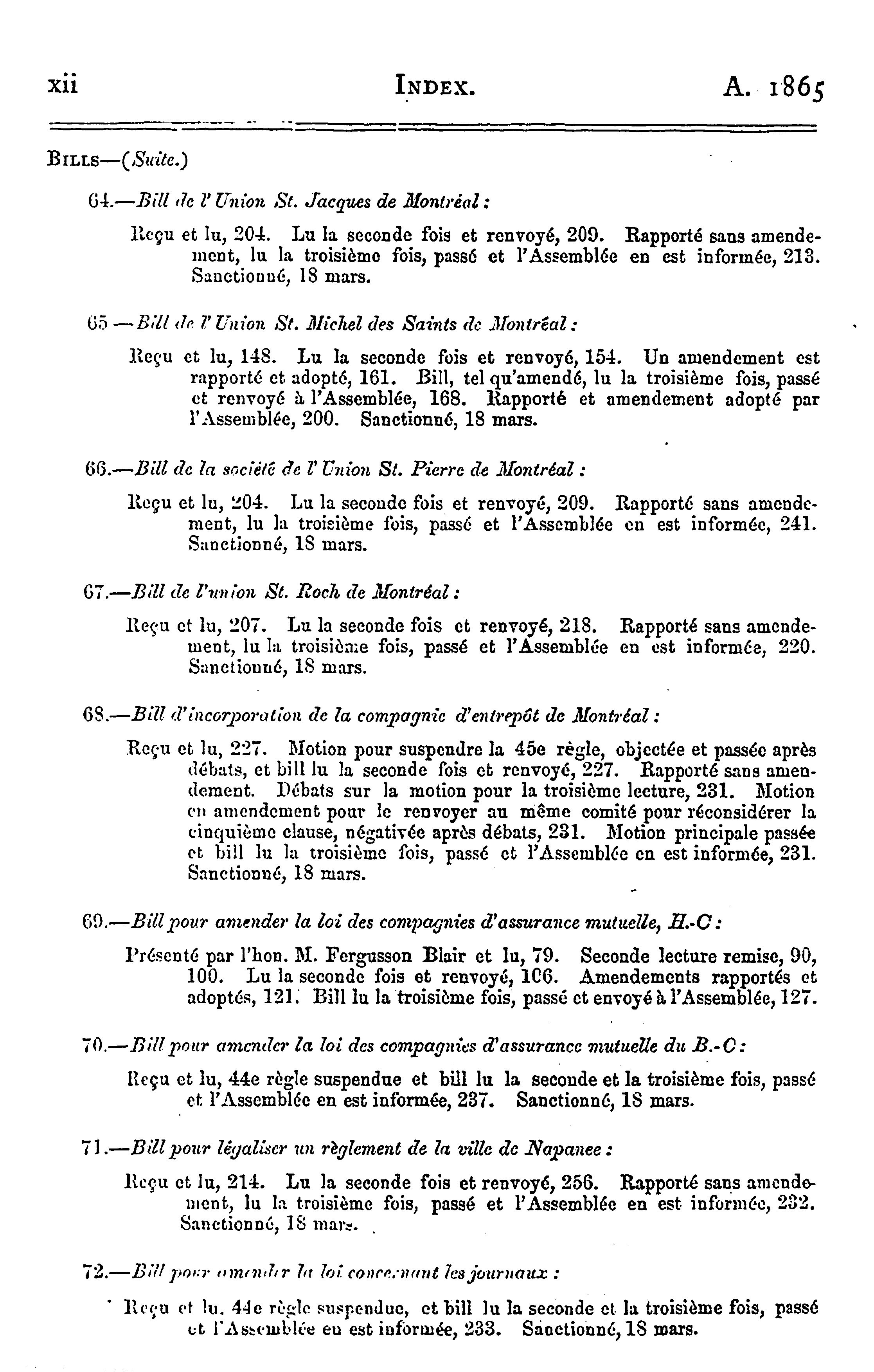 Journaux du Conseil législatif de la Province du Canada ... étant la troisième session du huitième Parlement provincial, 1865 : 1865