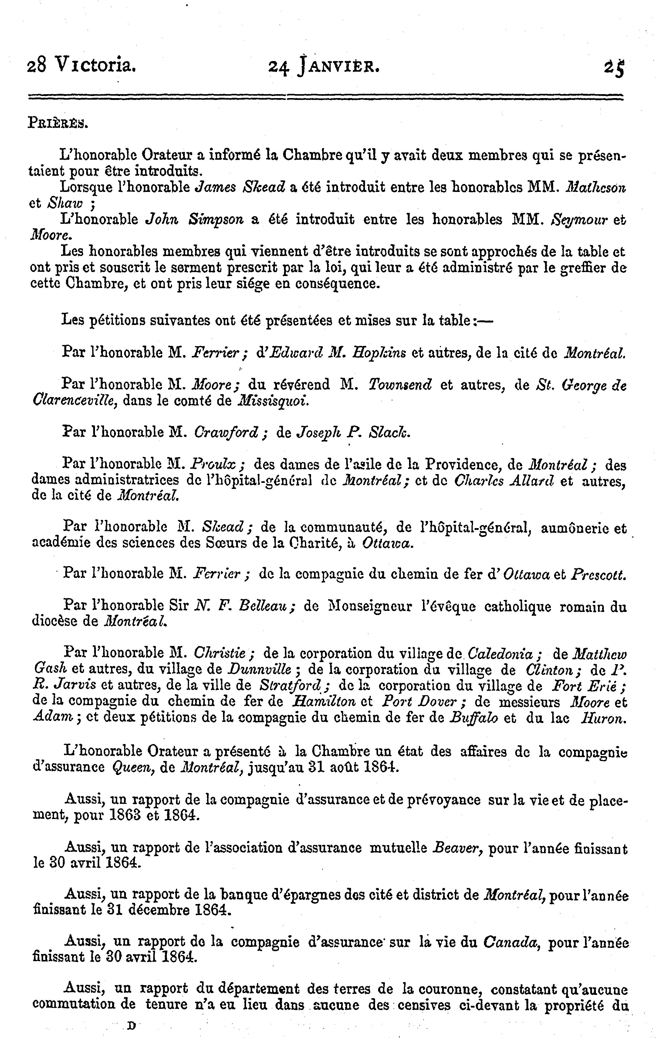 Journaux du Conseil législatif de la Province du Canada ... étant la troisième session du huitième Parlement provincial, 1865 : 1865