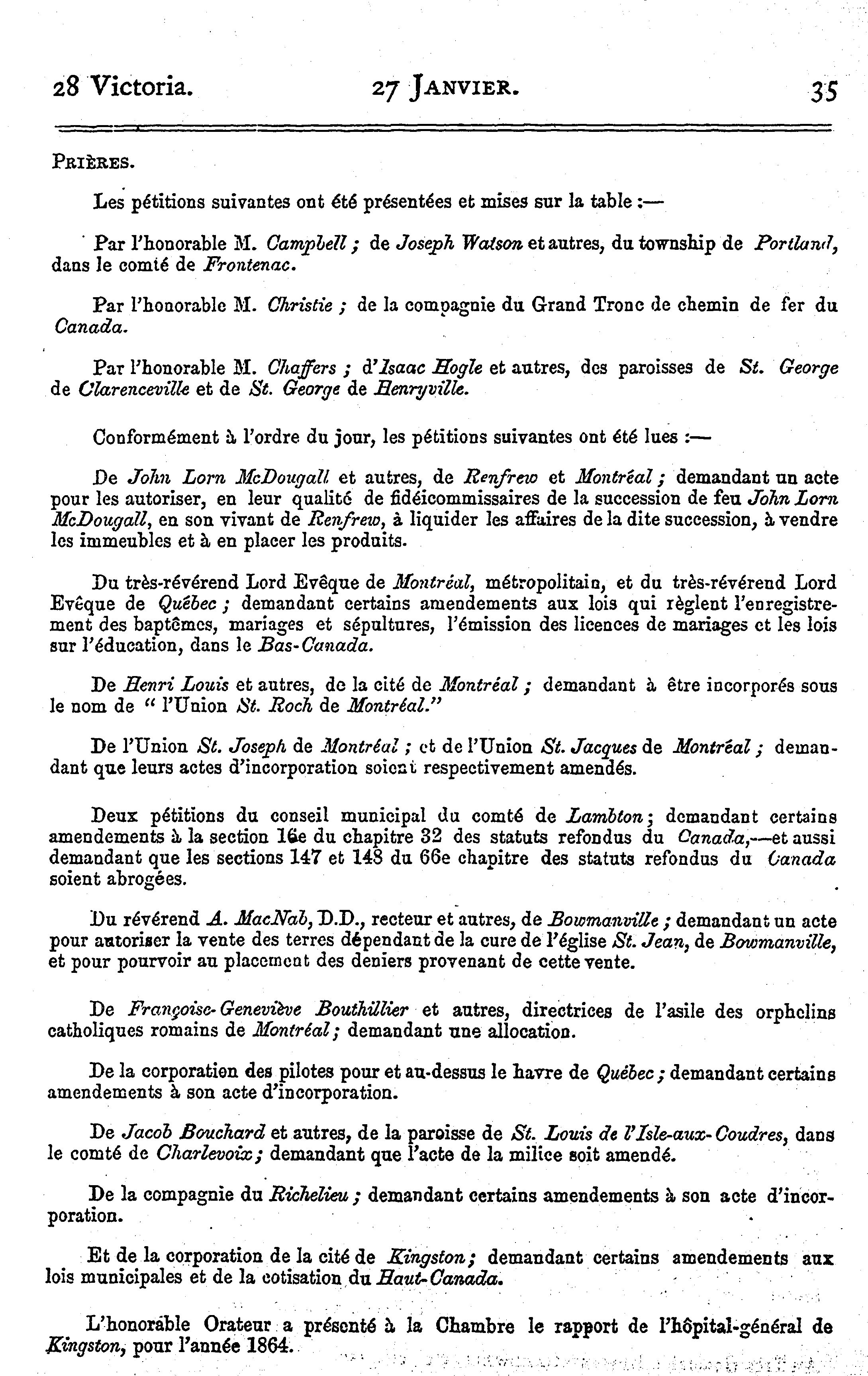 Québec : Queen's Printer, [1865]; 294 images avec recherche en texte intégral