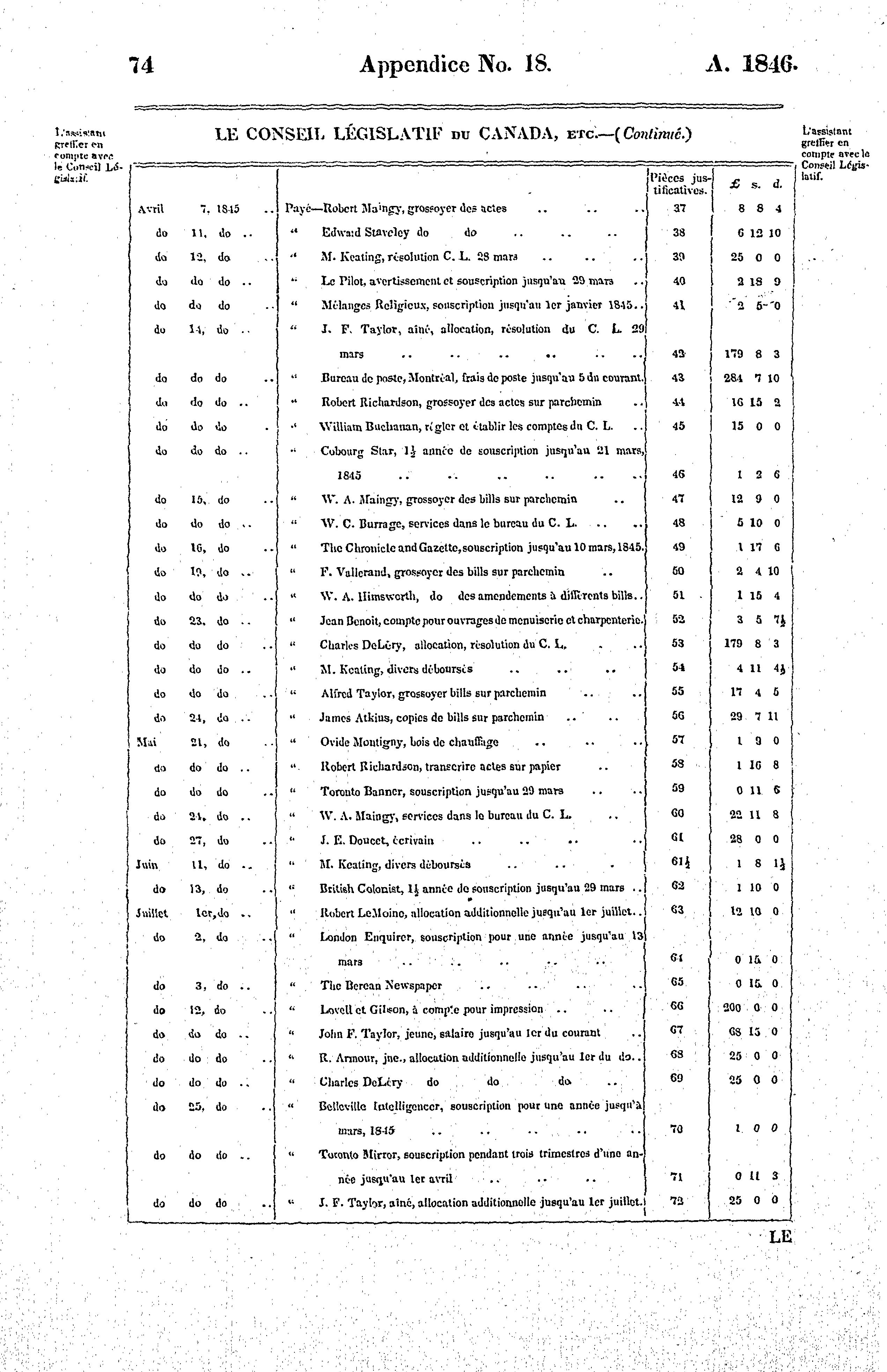 Journaux du Conseil législatif, de la Province du Canada ... étant la seconde session du second parlement provincial, 1846 : 1846