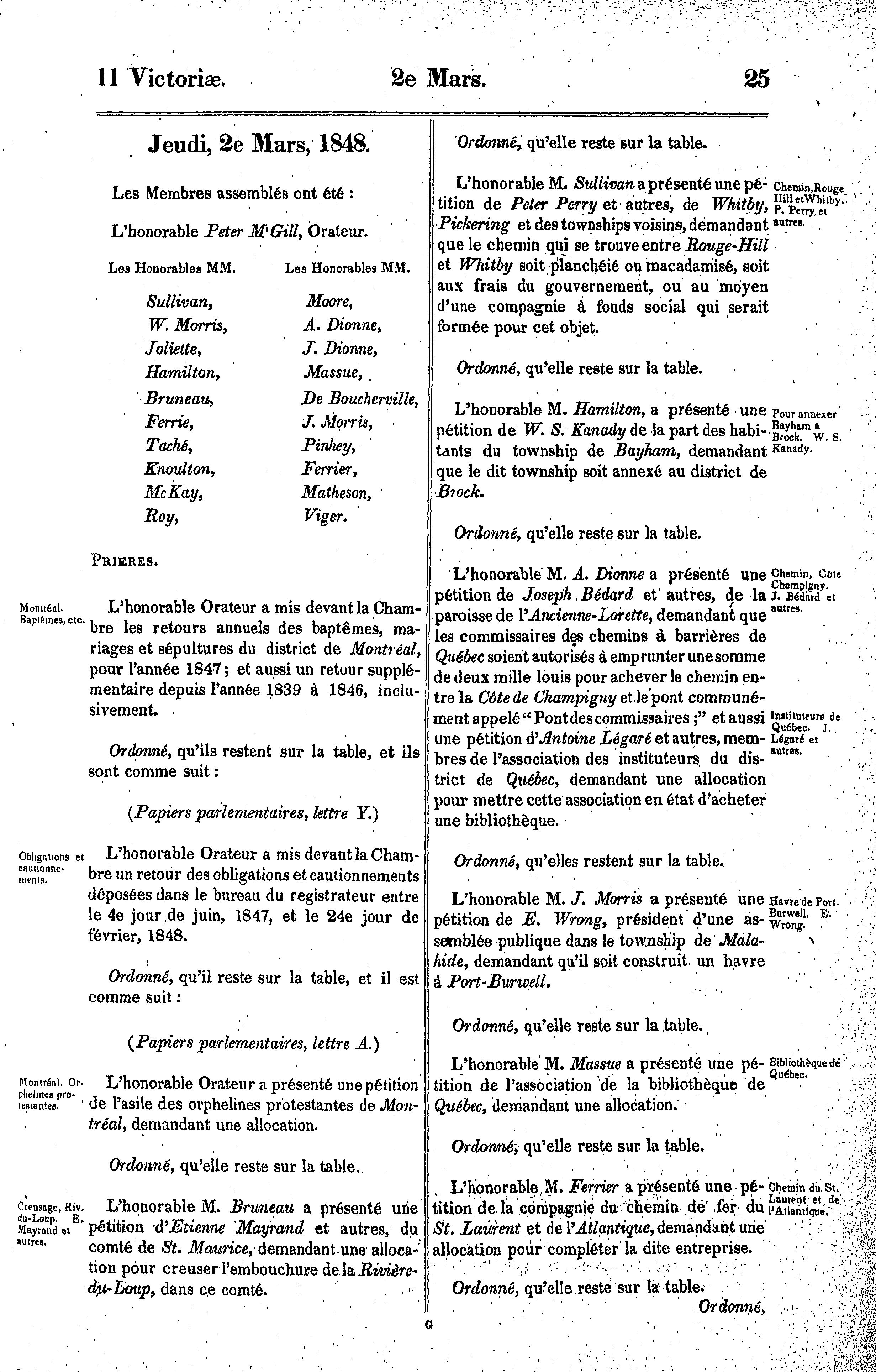 Journaux du Conseil législatif de la Province du Canada ... étant la première session du troisième parlement provincial, 1848 : 1848
