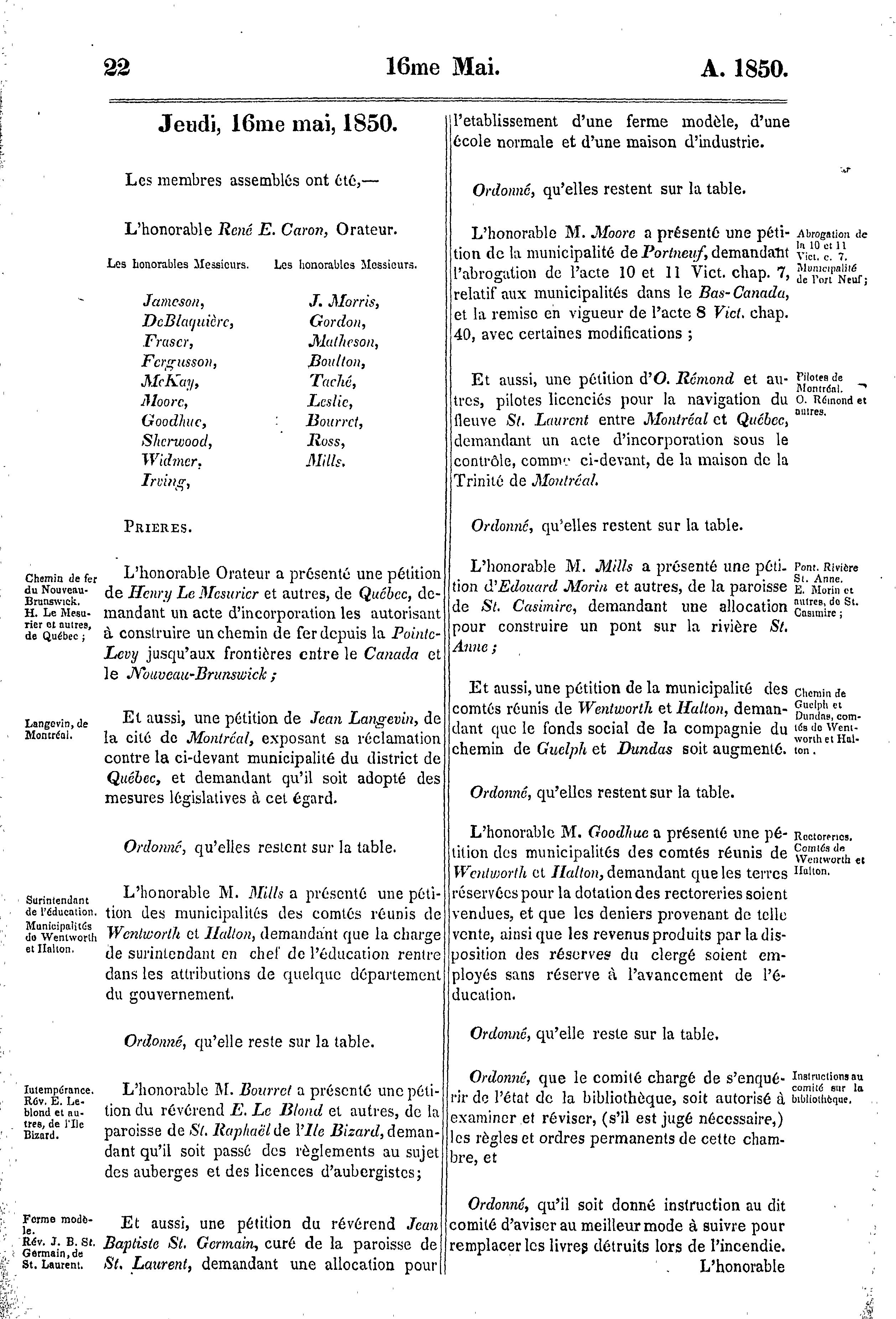 Journaux du Conseil législatif de la Province du Canada ... étant la troisième session du troisième parlement provincial, 1850 : 1850