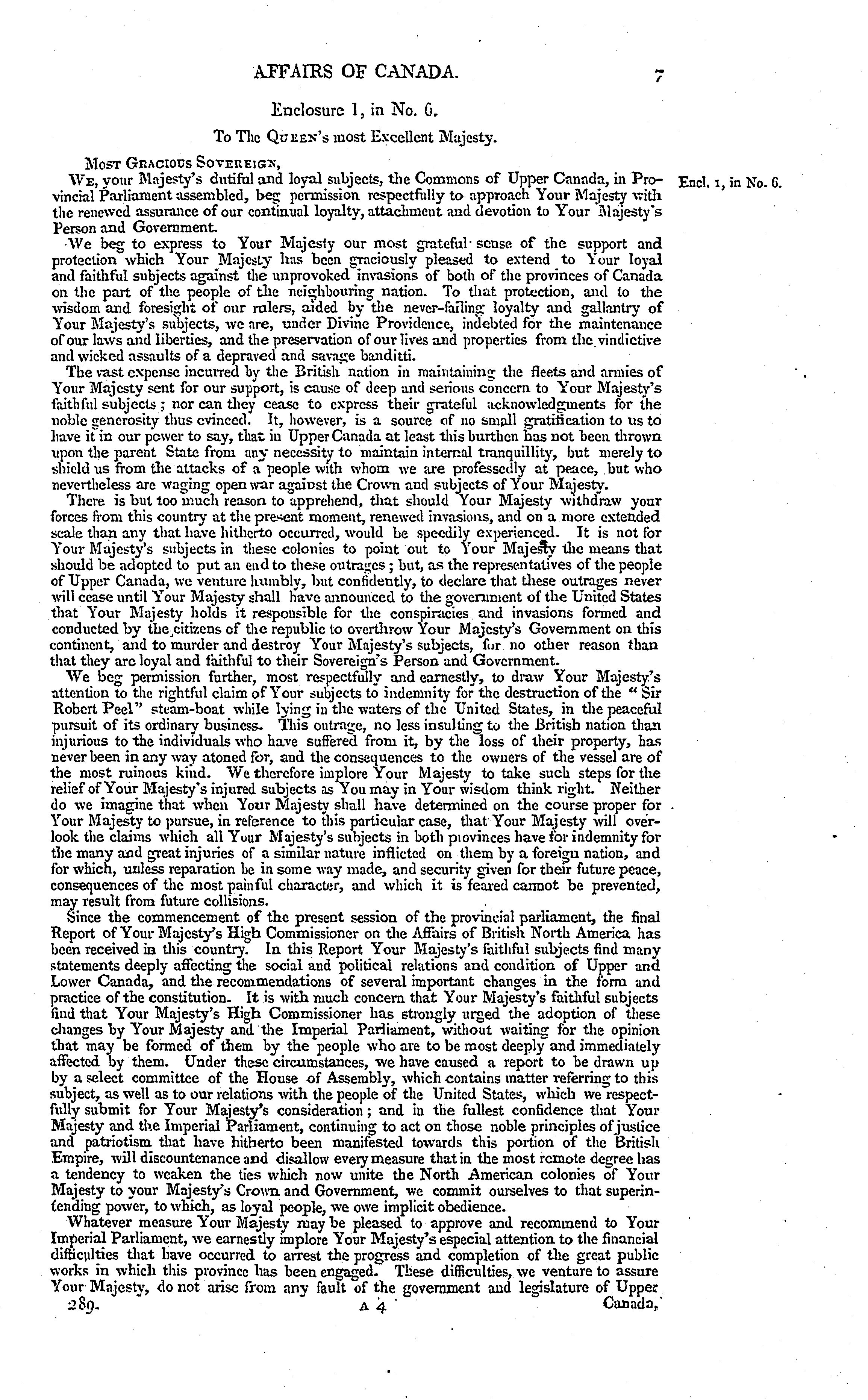 A variant of this item has the same text, but its title lacks the word " Canada," its subtitle reads "presented by Her Majesty's command," and the number at the foot of the t.p. is "103" below the phrase "ordered to be printed 10th June 1839."