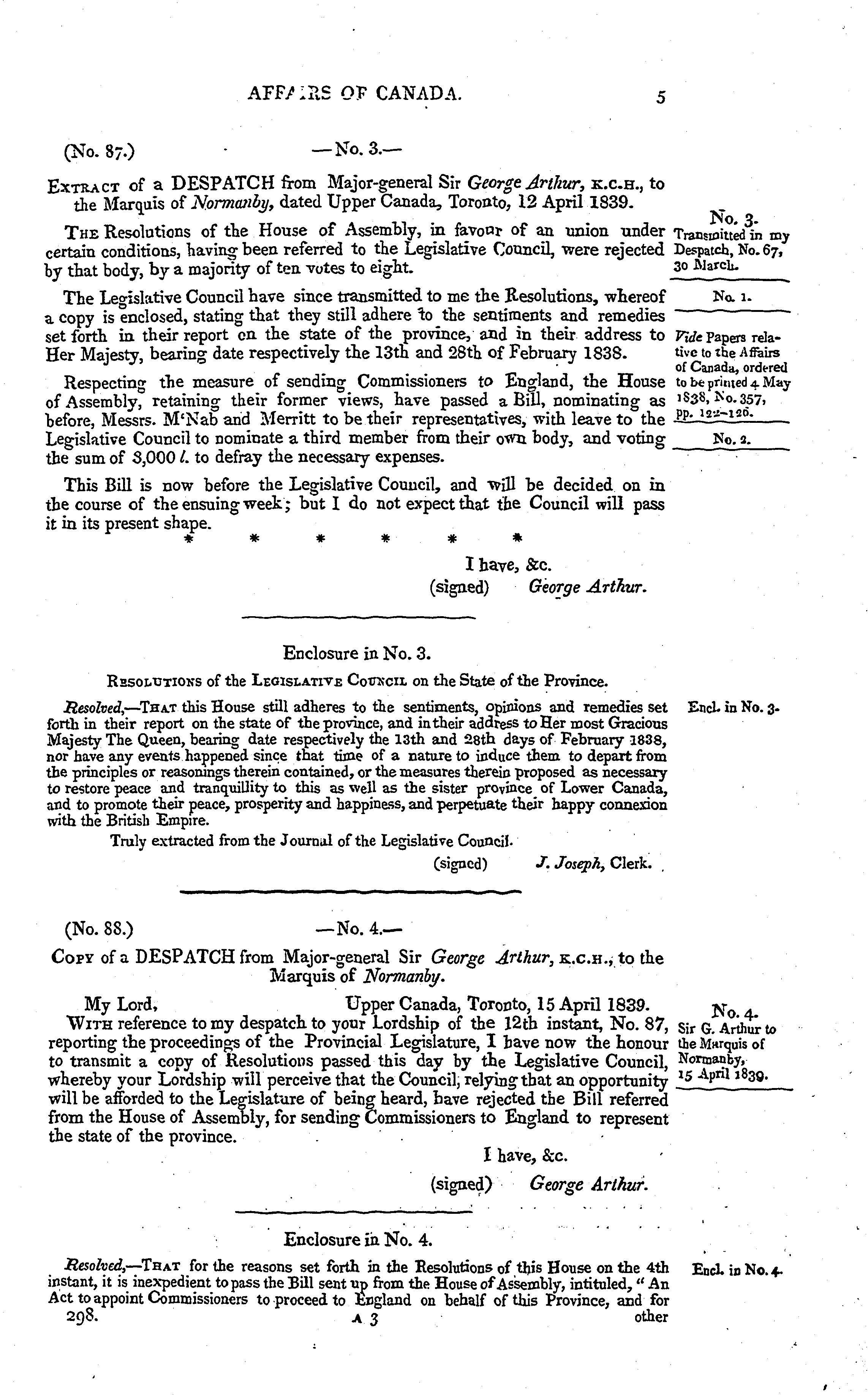 Canada : copies or extracts of correspondence relative to the affairs of Canada : presented to Parliament by Her Majesty's command.