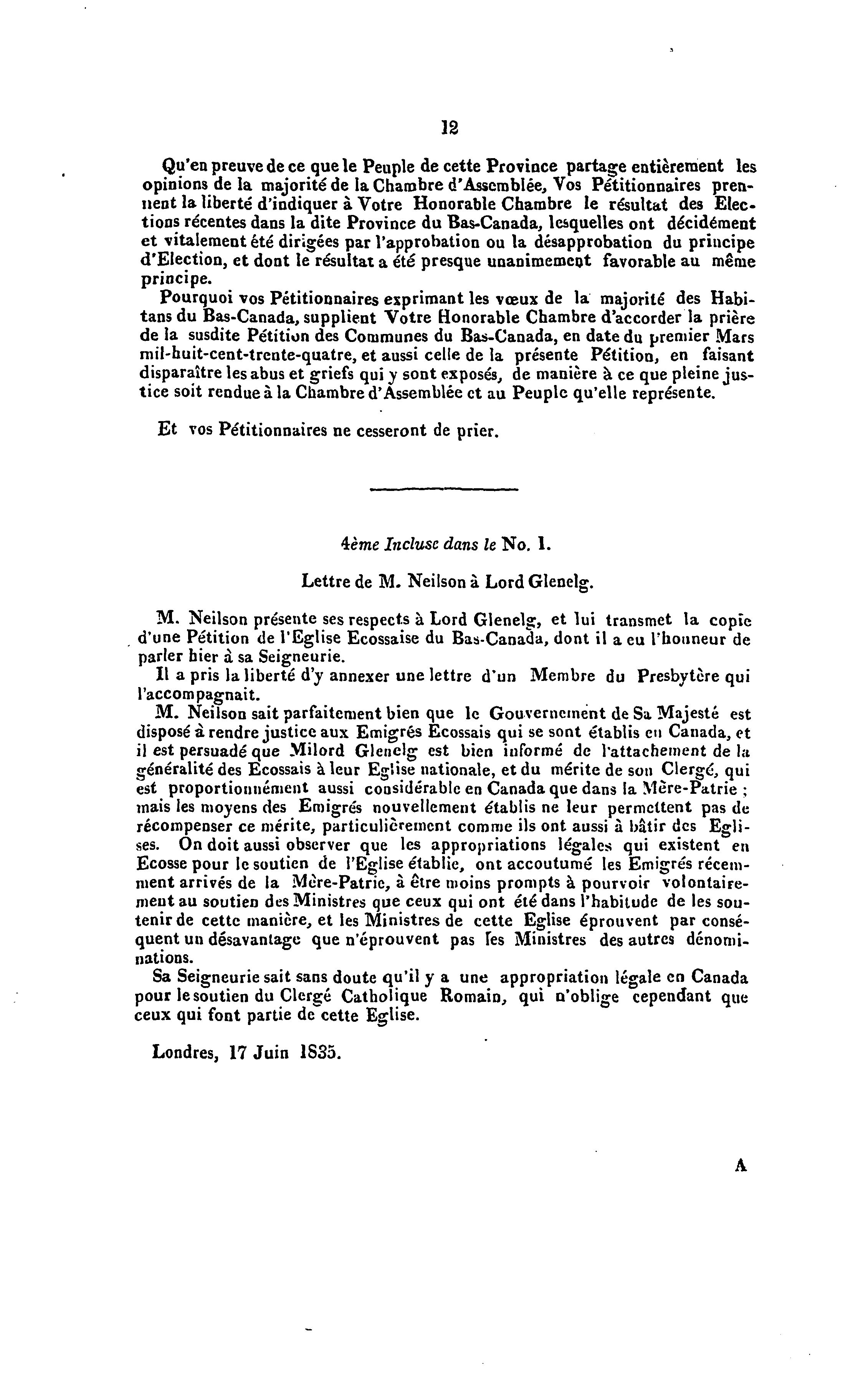 Aussi disponible en anglais sous le titre: Canada : return to an address of the Honourable the House of Commons, dated 14 March 1836 : for Copy of the instructions given to the Earl of Gosford, and the Commissioners appointed to inquire into the grievances complained of in Lower Canada : also Copy of the instructions given to Sir F.B. Head, lieutenant-governor of Upper Canada.