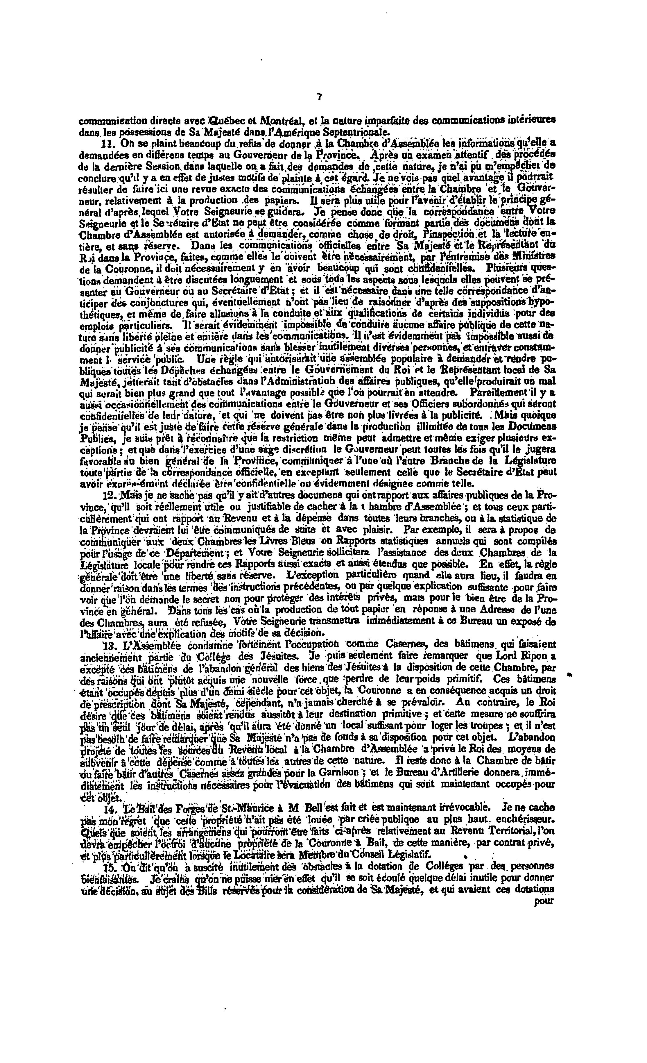 Instructions émises par Lord Glenelg, secrétaire d'État pour les colonies.