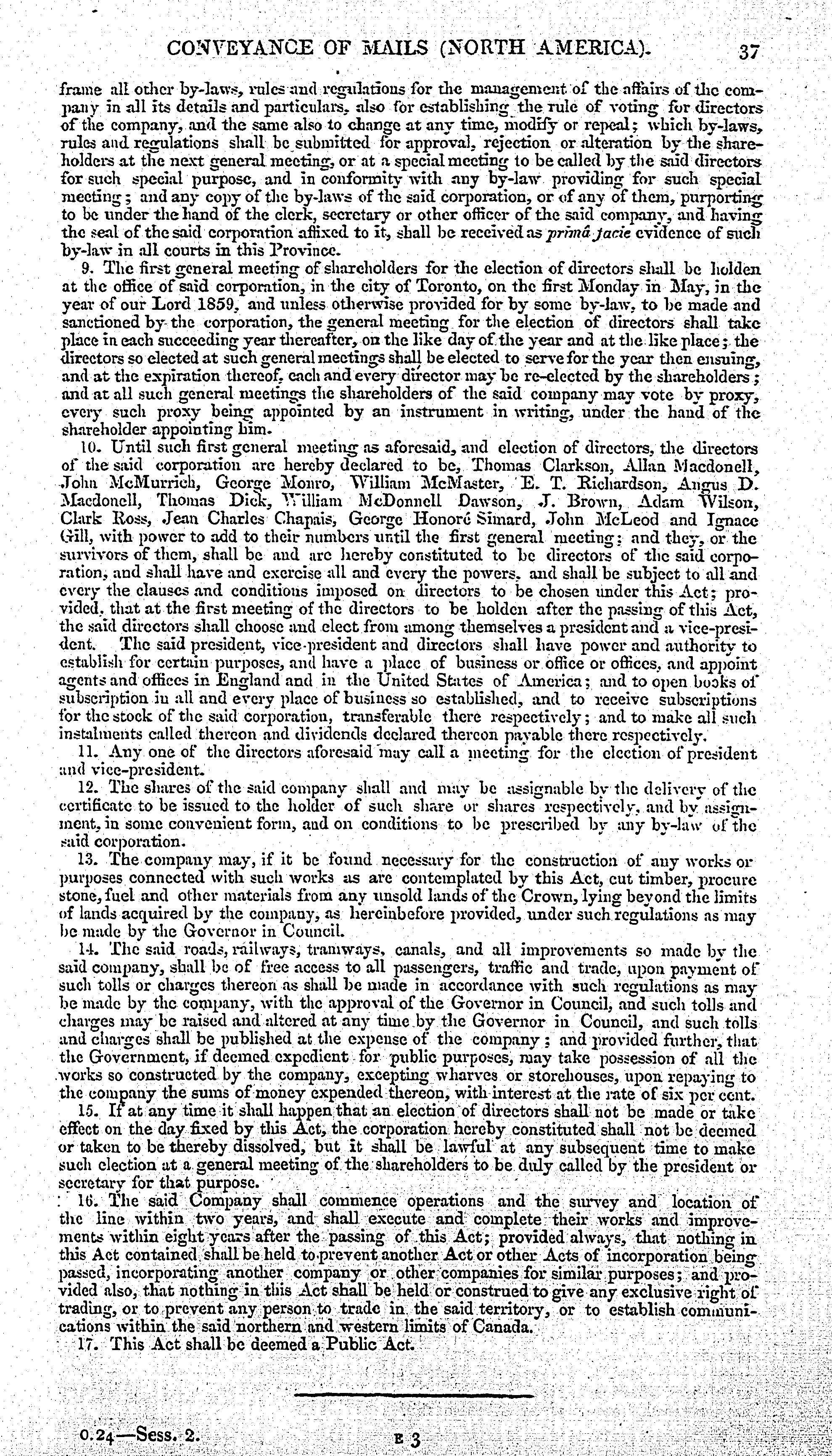 Conveyance of mails (North America) : return to an address of the Honourable the House of Commons, dated 7 July 1859, for, Copies of all correspondence between Her Majesty's government and the provincial government of Canada, in reference to the conveyance of mails between this country and British North America ; of an address to Her Majesty ; ... and of all correspondence between Her Majesty's government and the British and North American Royal Mail Steam Packet Company or Sir Samuel Cunard, Baronet, on the subject of the prolongation or renewal of the contract made with that company for the conveyance of the mails to and from North America. - Adresse bibliographique