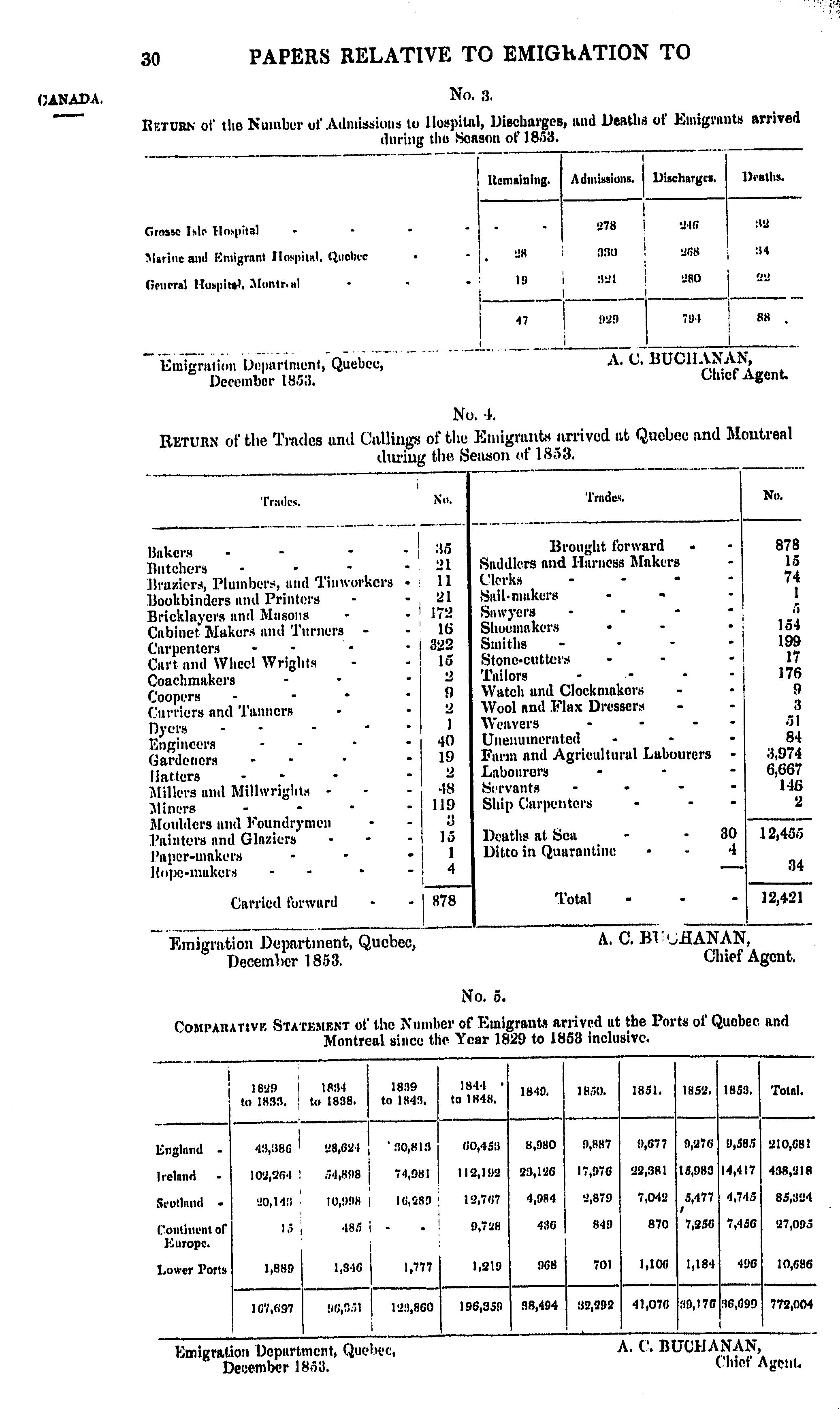 Papers relative to emigration to the North American colonies (in continuation of papers presented 17th June 1853)