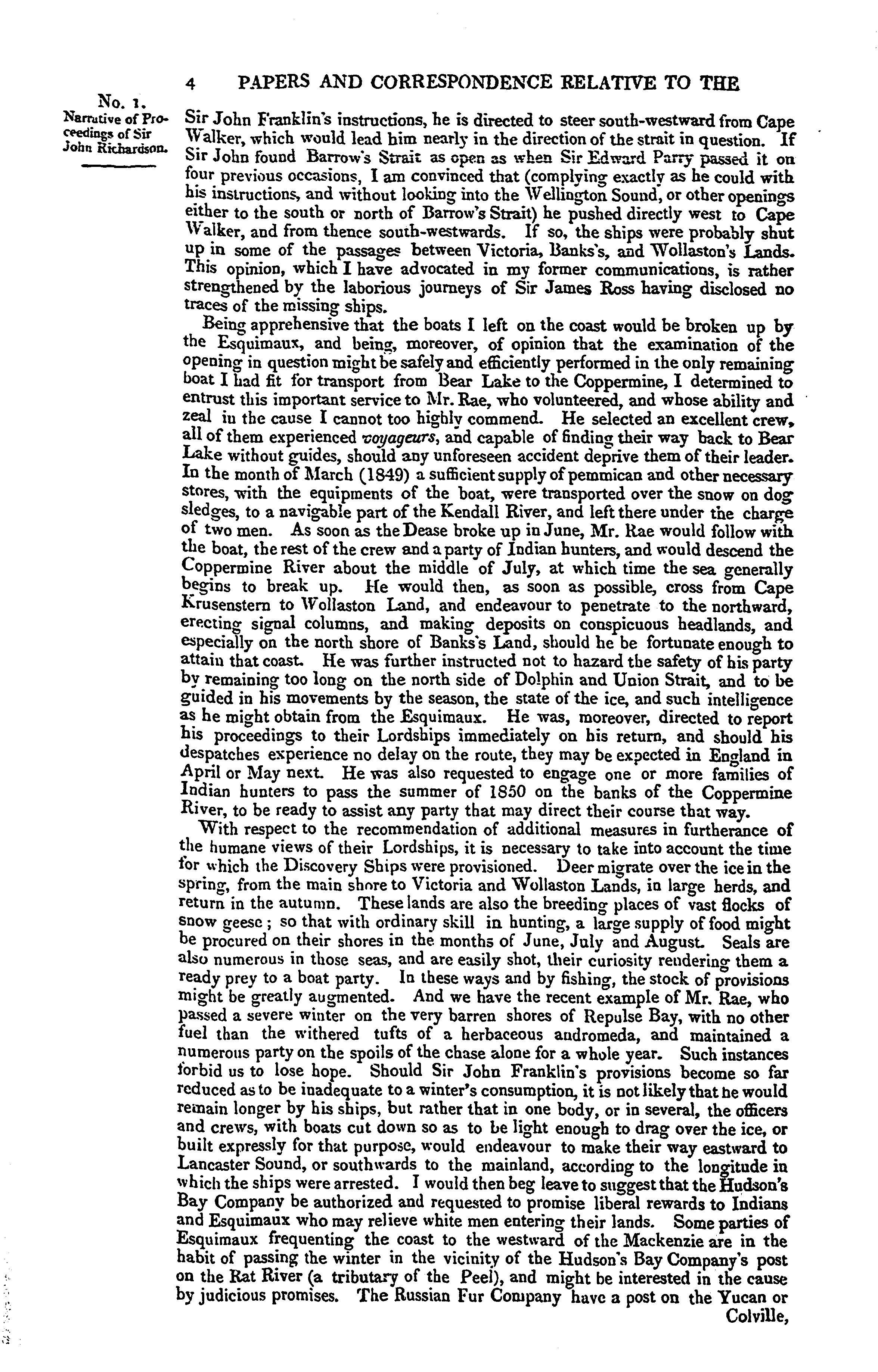 Papers and correspondence relative to the Arctic expedition under Sir John Franklin