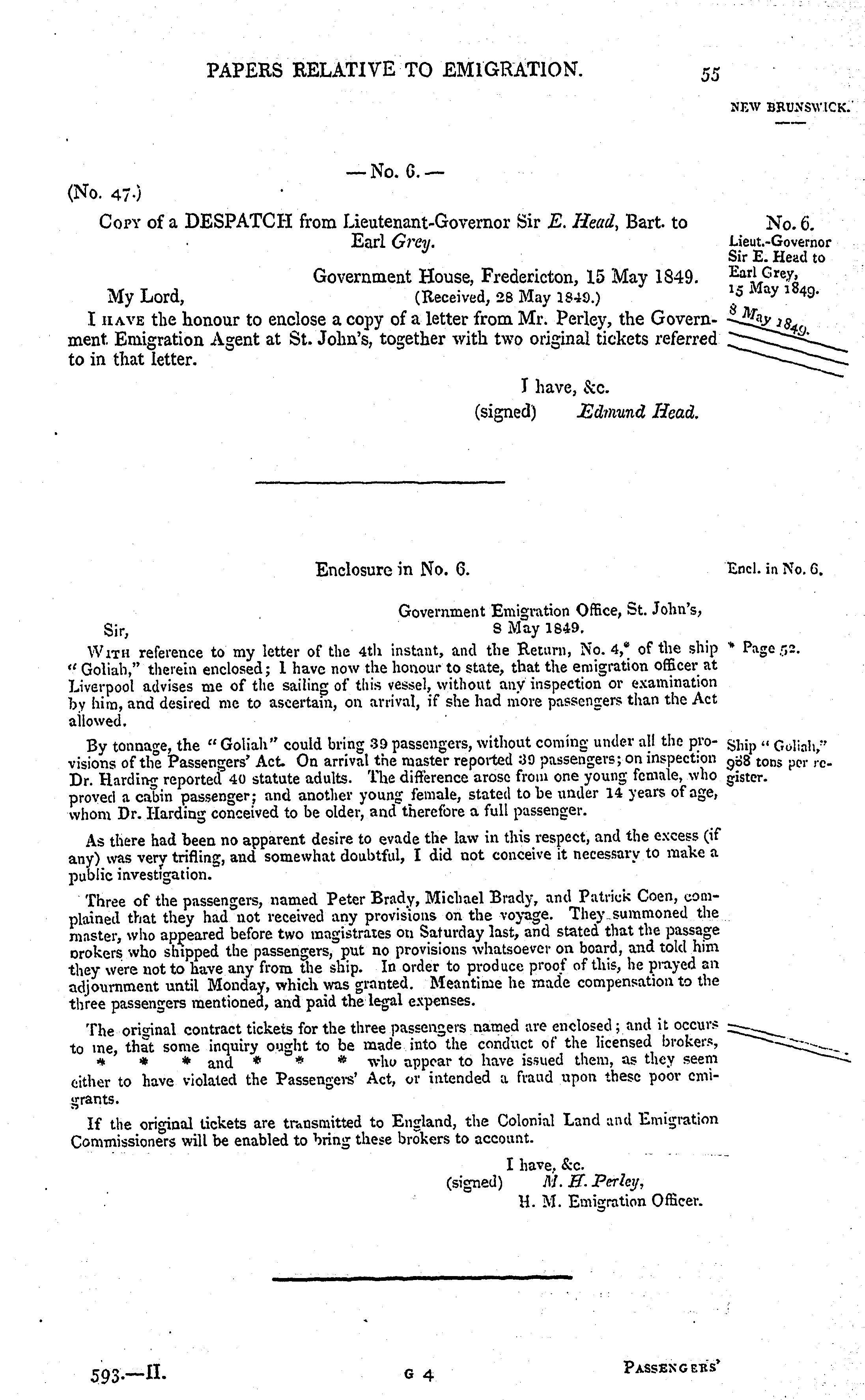 Emigration (North American and Australian colonies) : returns to two addresses of the Honourable the House of Commons, dated 15 May and 27 July 1849, viz. address, 15 May, "Copies or extracts of any despatches relative to emigration to the North American and Australian colonies, in continuation of the papers presented to this House in August 1848 and February 1849" (Mr. Monsell), address, 27 July, " Copies or extracts of any despatches relative to emigration to the North American and Australian colonies, since those moved for on the 15th day of May last" (Mr. Hawes) ... Part II -North American colonies. - Adresse bibliographique