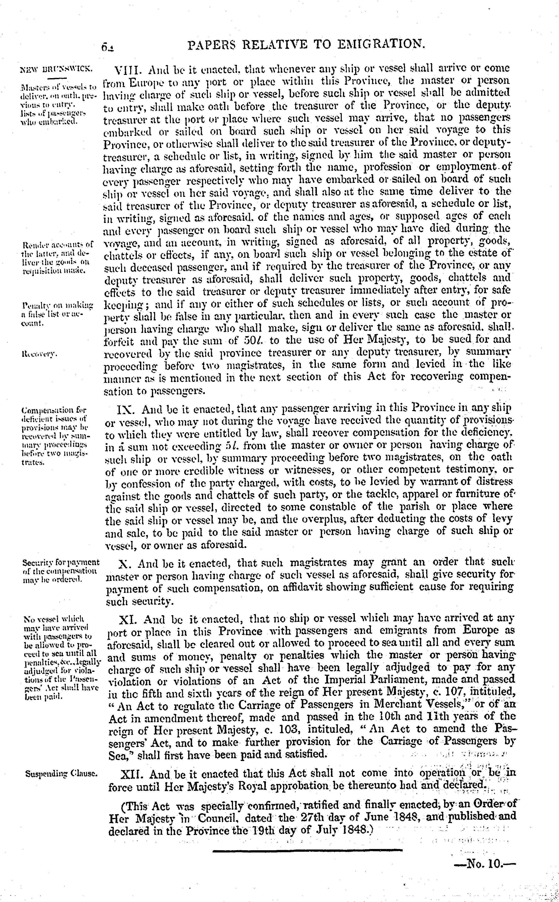 Emigration (North American and Australian colonies) : returns to two addresses of the Honourable the House of Commons, dated 15 May and 27 July 1849, viz. address, 15 May, "Copies or extracts of any despatches relative to emigration to the North American and Australian colonies, in continuation of the papers presented to this House in August 1848 and February 1849" (Mr. Monsell), address, 27 July, " Copies or extracts of any despatches relative to emigration to the North American and Australian colonies, since those moved for on the 15th day of May last" (Mr. Hawes) ... Part II -North American colonies. - Adresse bibliographique