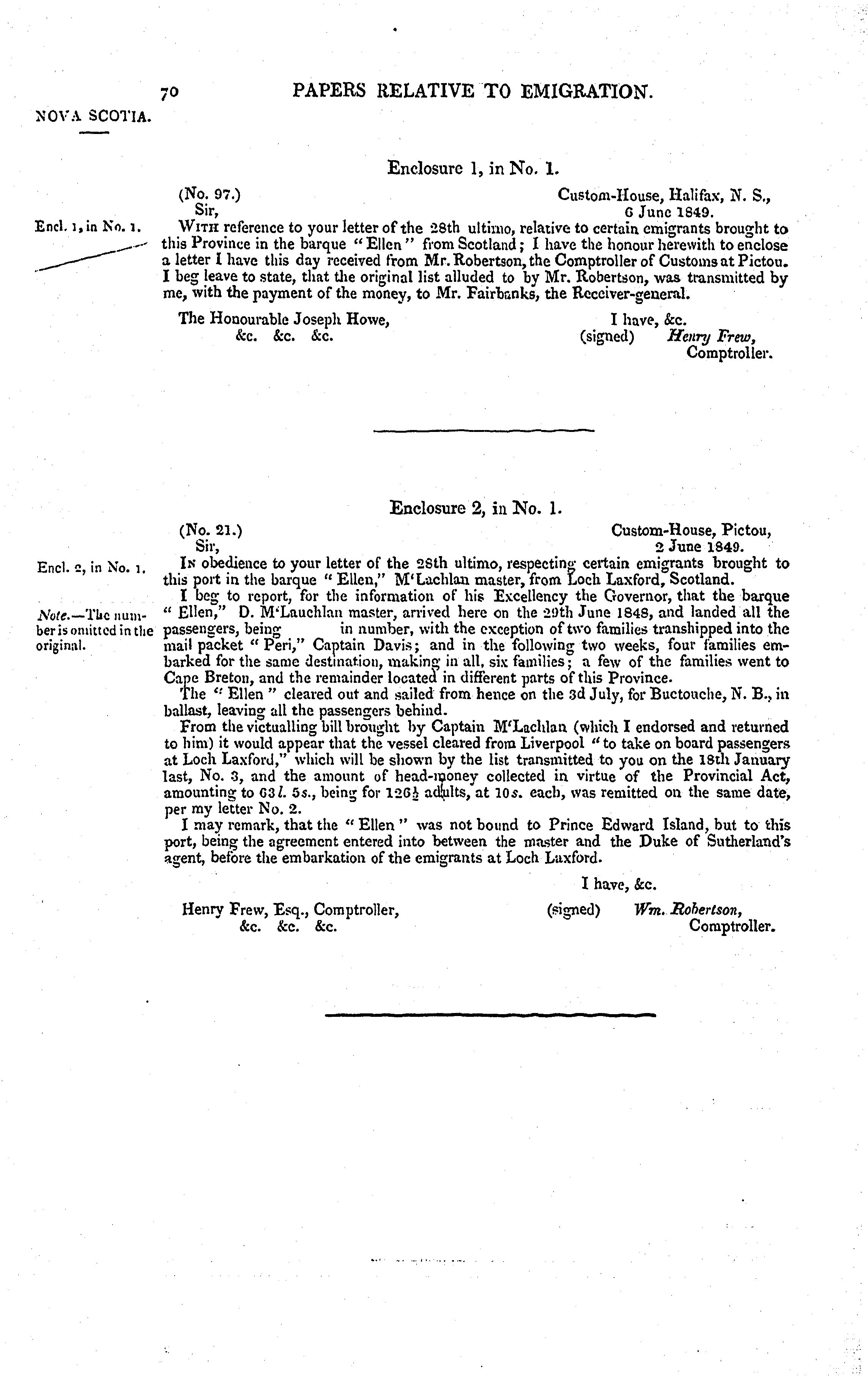 Emigration (North American and Australian colonies) : returns to two addresses of the Honourable the House of Commons, dated 15 May and 27 July 1849, viz. address, 15 May, "Copies or extracts of any despatches relative to emigration to the North American and Australian colonies, in continuation of the papers presented to this House in August 1848 and February 1849" (Mr. Monsell), address, 27 July, " Copies or extracts of any despatches relative to emigration to the North American and Australian colonies, since those moved for on the 15th day of May last" (Mr. Hawes) ... Part II -North American colonies. - Adresse bibliographique