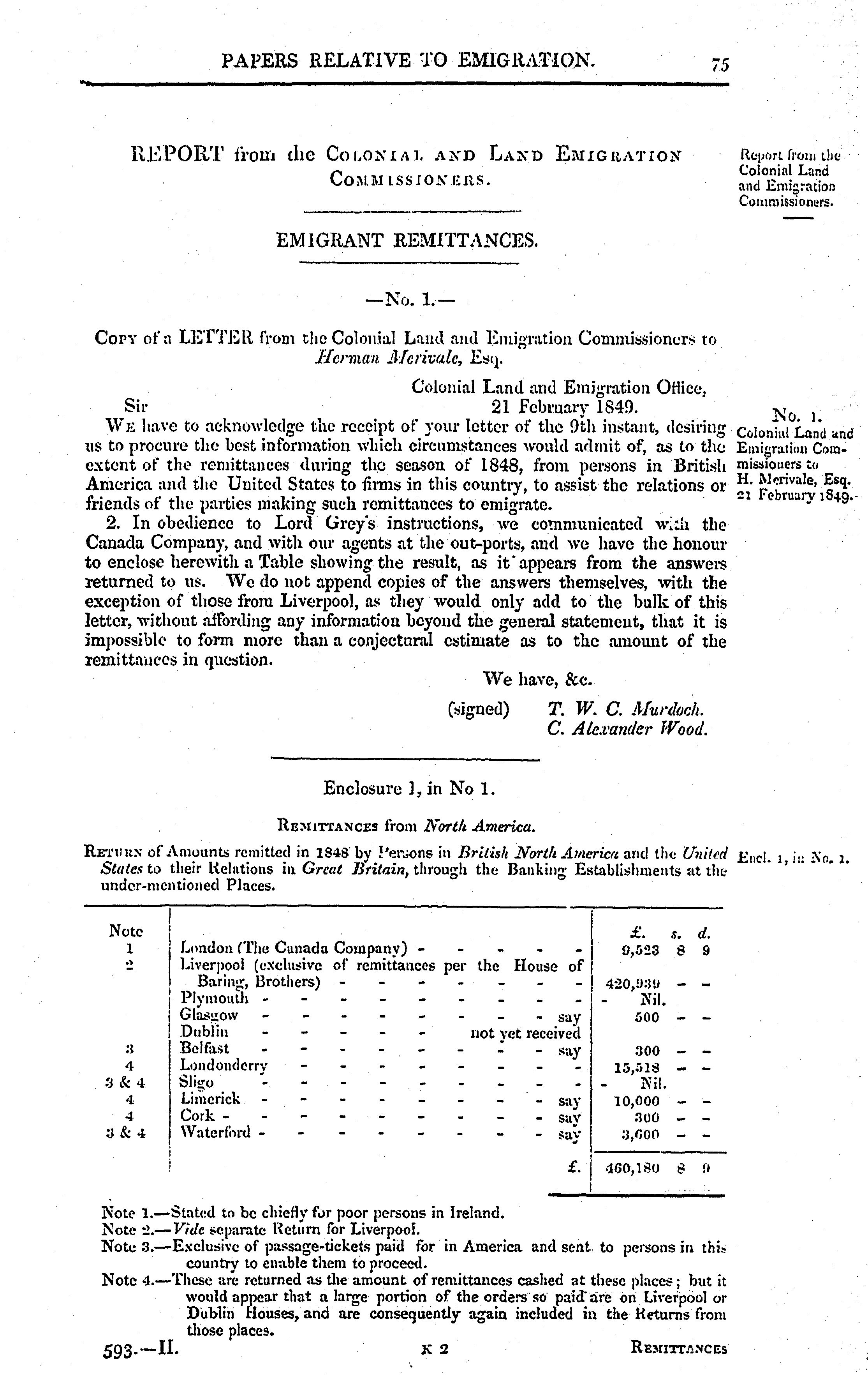 Emigration (North American and Australian colonies) : returns to two addresses of the Honourable the House of Commons, dated 15 May and 27 July 1849, viz. address, 15 May, "Copies or extracts of any despatches relative to emigration to the North American and Australian colonies, in continuation of the papers presented to this House in August 1848 and February 1849" (Mr. Monsell), address, 27 July, " Copies or extracts of any despatches relative to emigration to the North American and Australian colonies, since those moved for on the 15th day of May last" (Mr. Hawes) ... Part II -North American colonies.