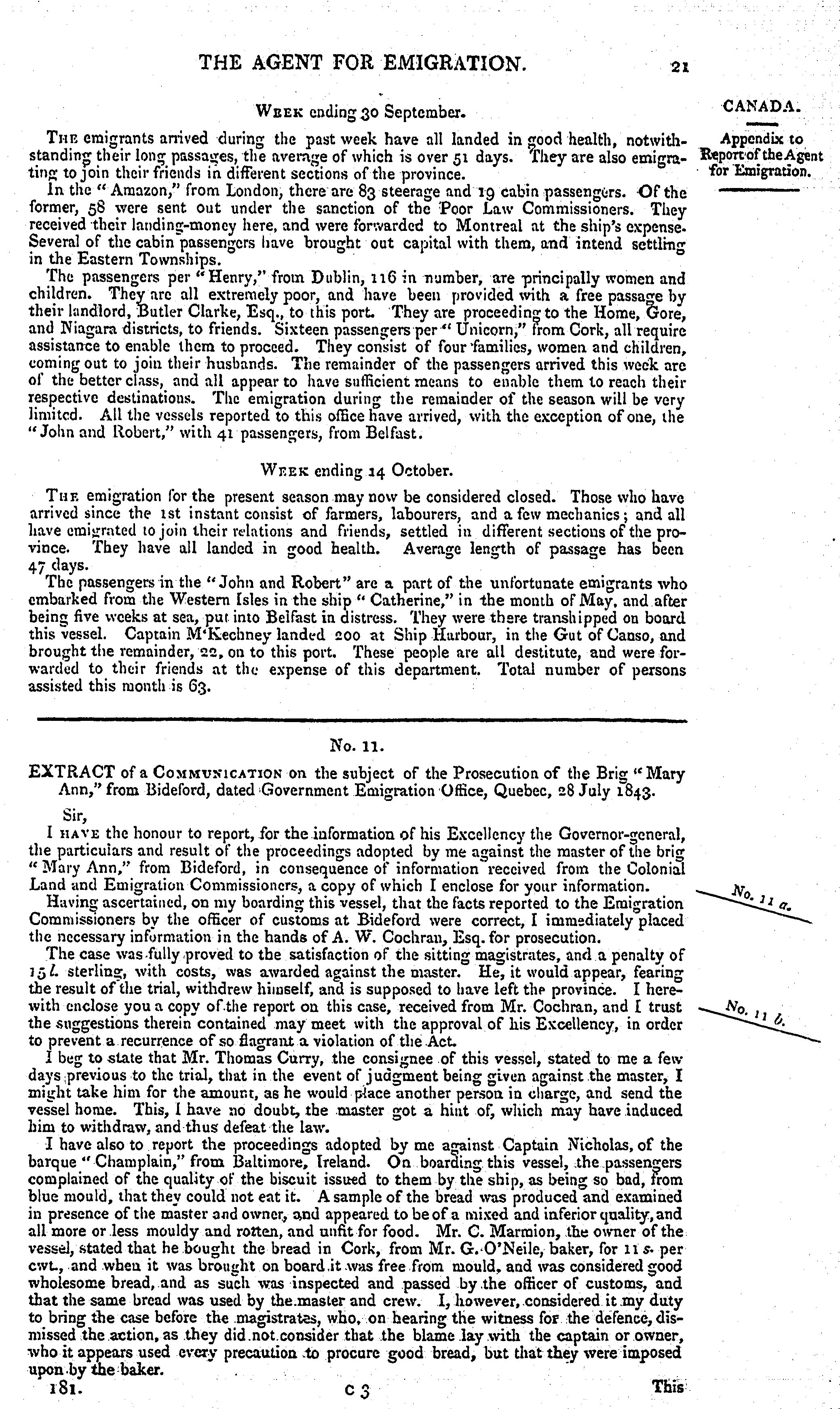 Emigration : return to an address of the Honourable the House of Commons, dated 1 April 1844,-for, Copy or extract of a despatch from the Governor-General of Canada, transmitting the last annual report of the agent for emigration. - Published