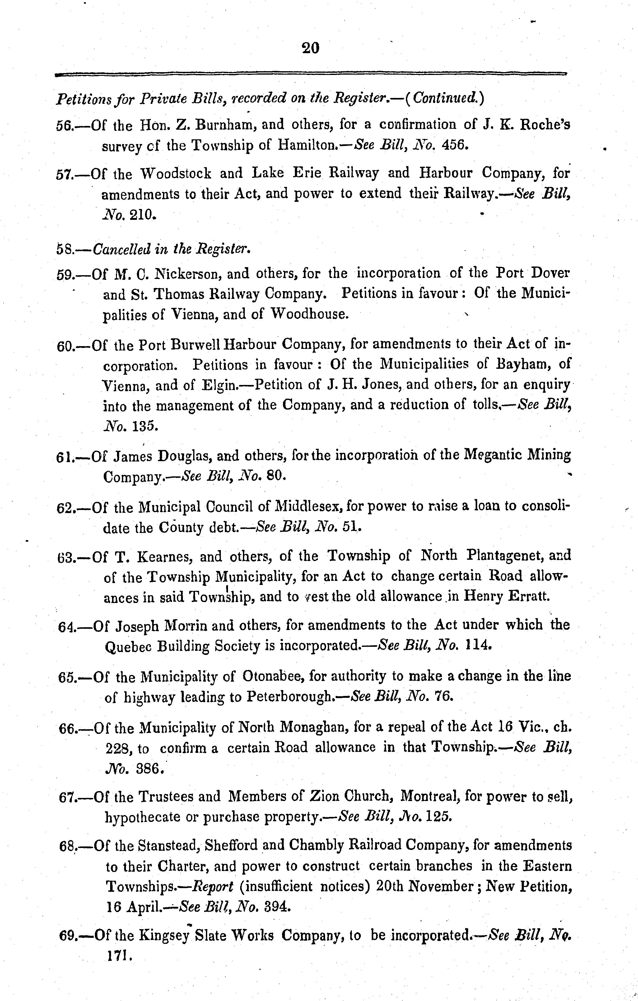 At head of title: Legislative Assembly, Quebec, 30th May, 1855.