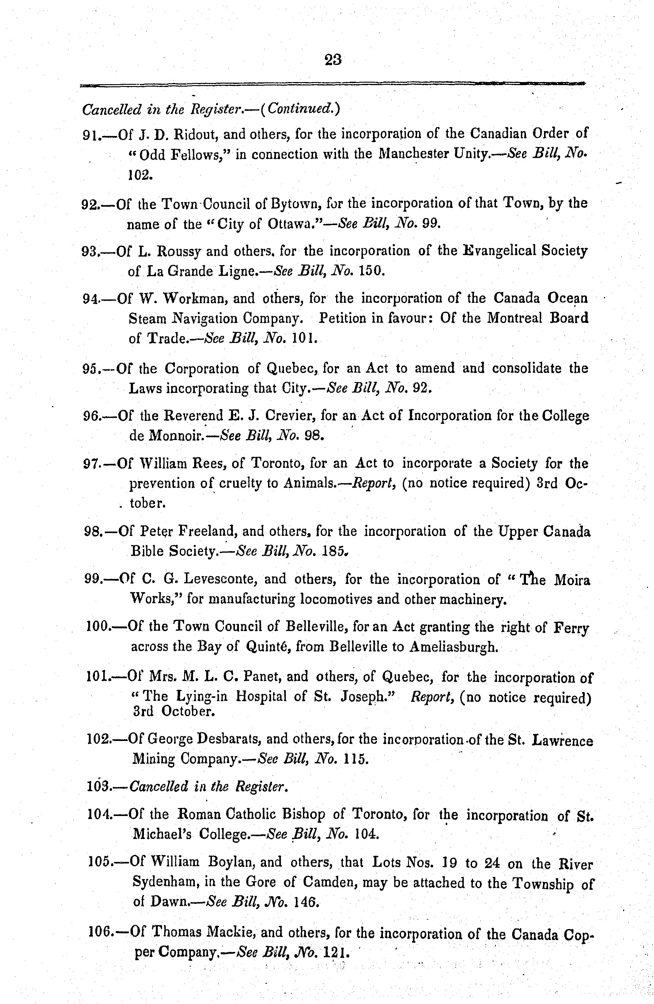 At head of title: Legislative Assembly, Quebec, 30th May, 1855.
