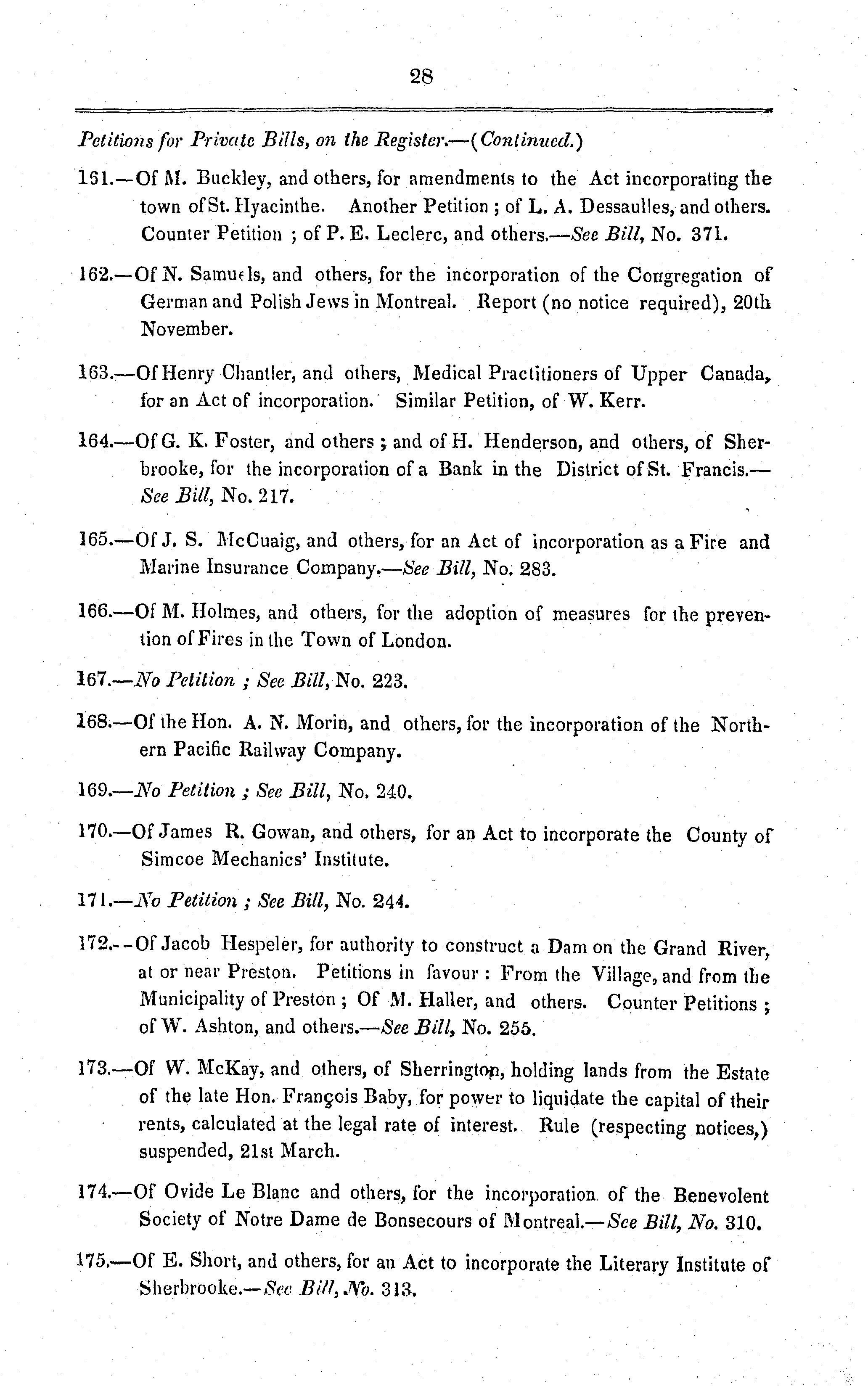 At head of title: Legislative Assembly, Quebec, 30th May, 1855.