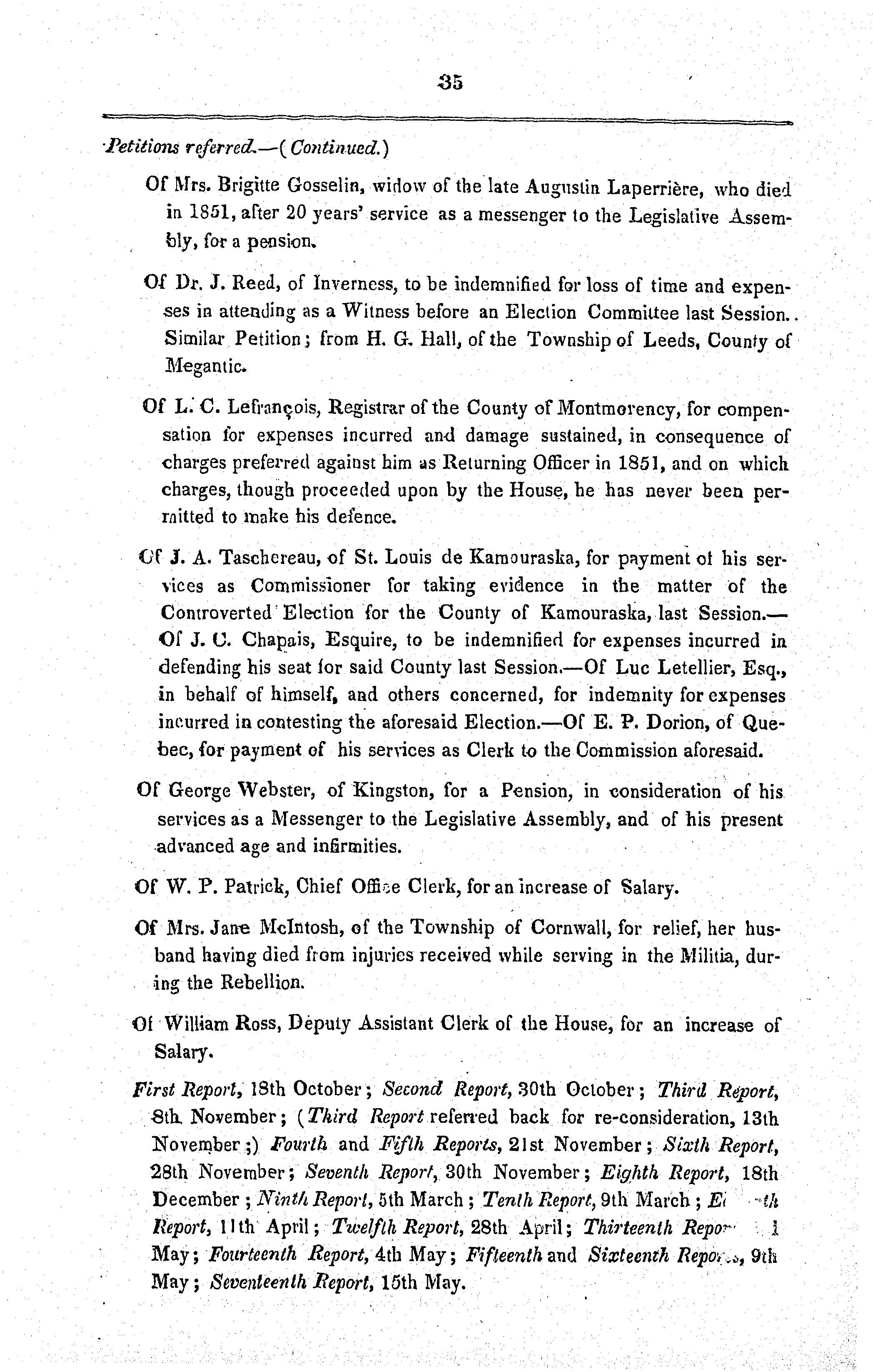 At head of title: Legislative Assembly, Quebec, 30th May, 1855.