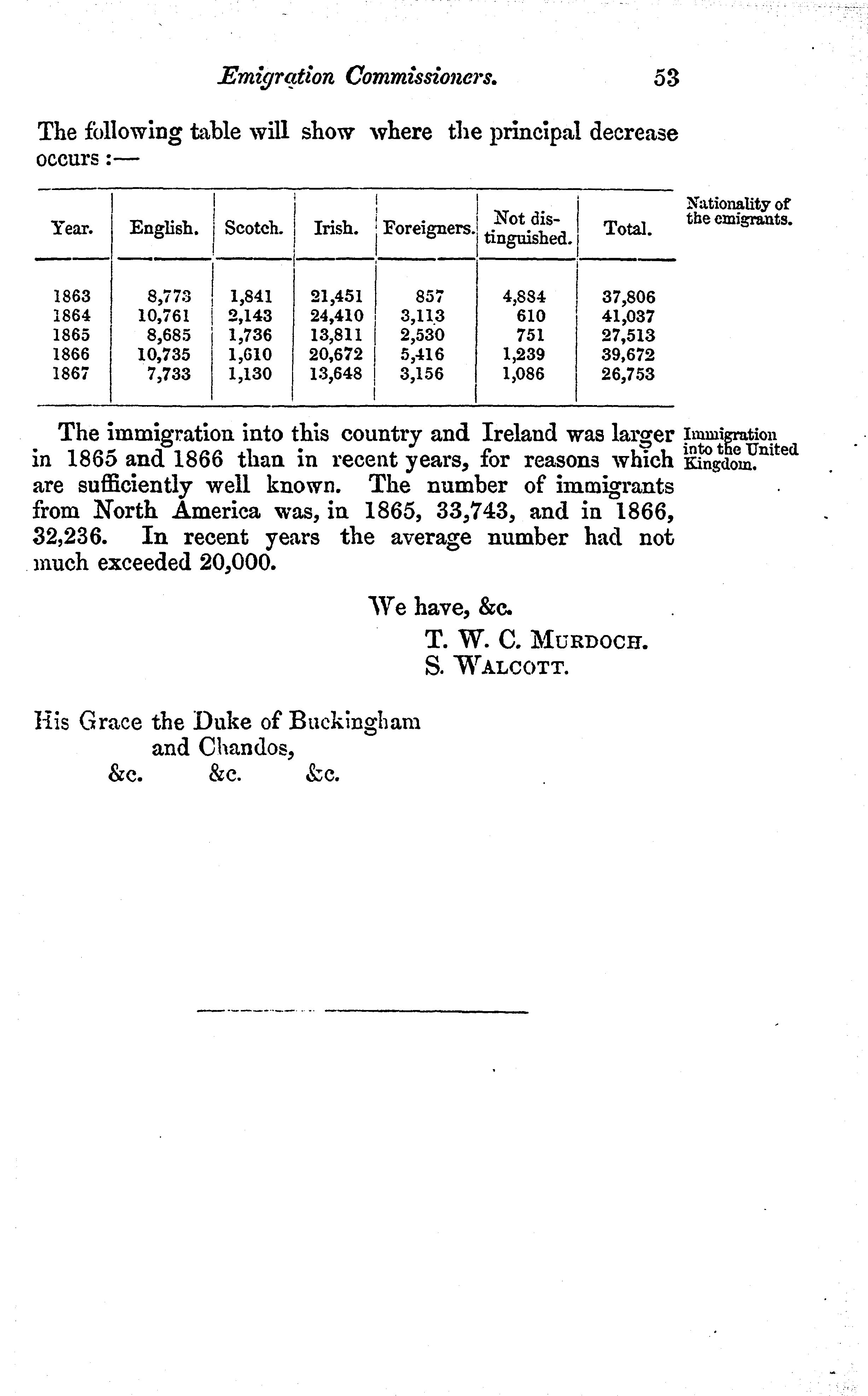 General report of the Emigration Commissioners ... : Twenty-seventh general report of the Emigration Commissioners, 1867 : 27th (1867)
