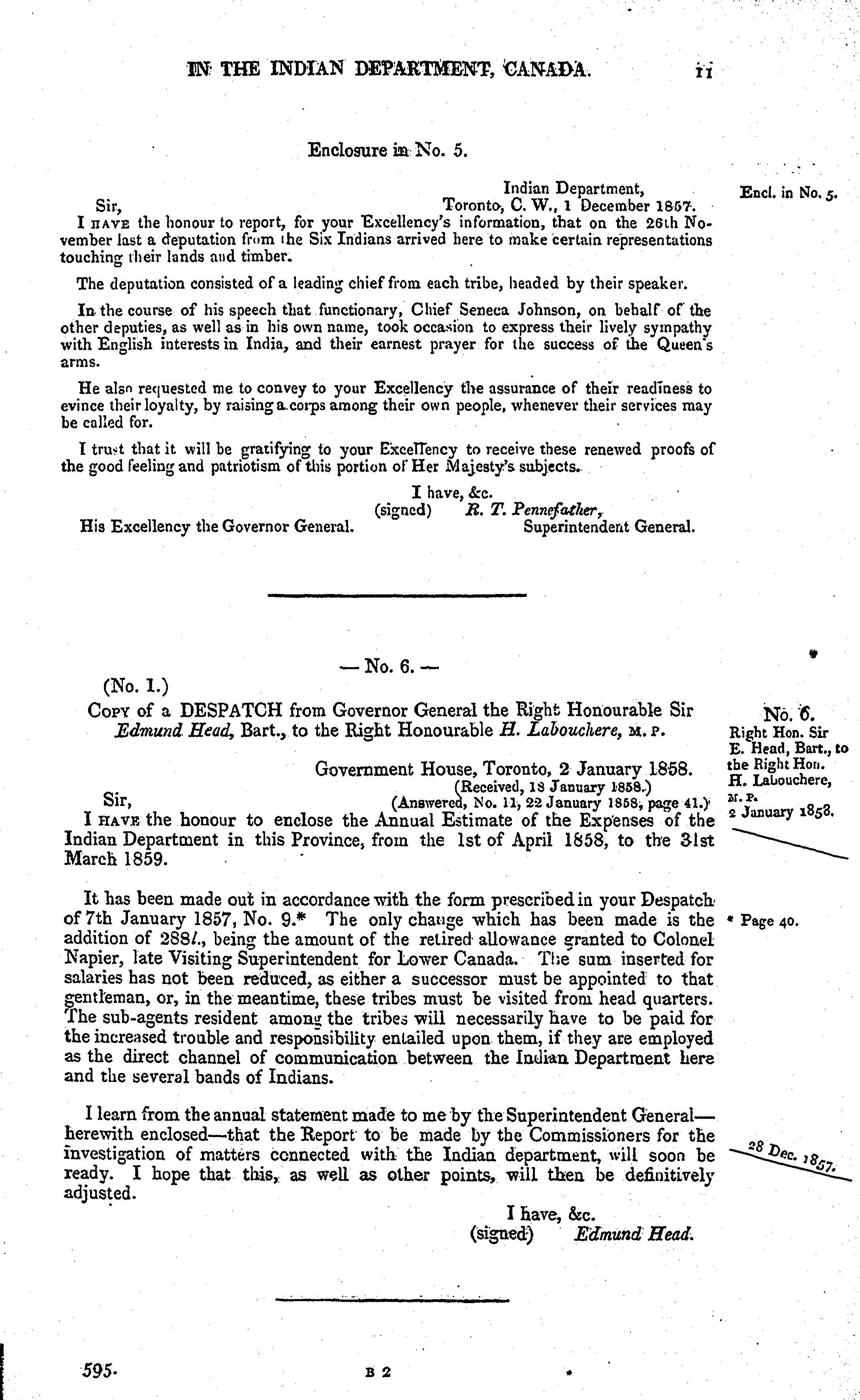 Indigenous peoples -- Canada -- Government relations -- 1830-1860.