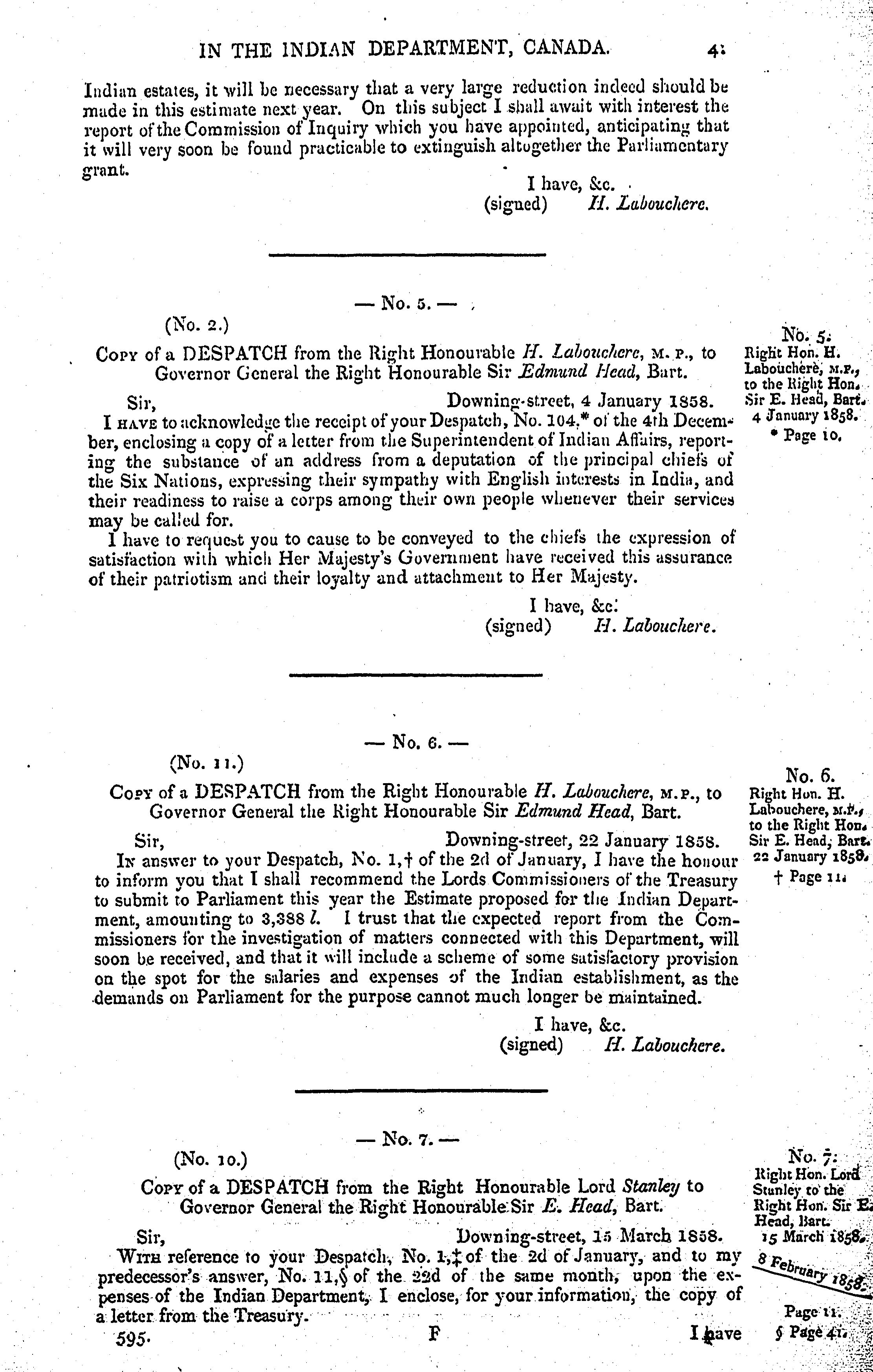 Cover title: Indian Department (Canada) : copies or extracts of correspondence between the secretary of state for the colonies and the governor general of Canada, respecting alterations in the organization of the Indian Department in Canada.