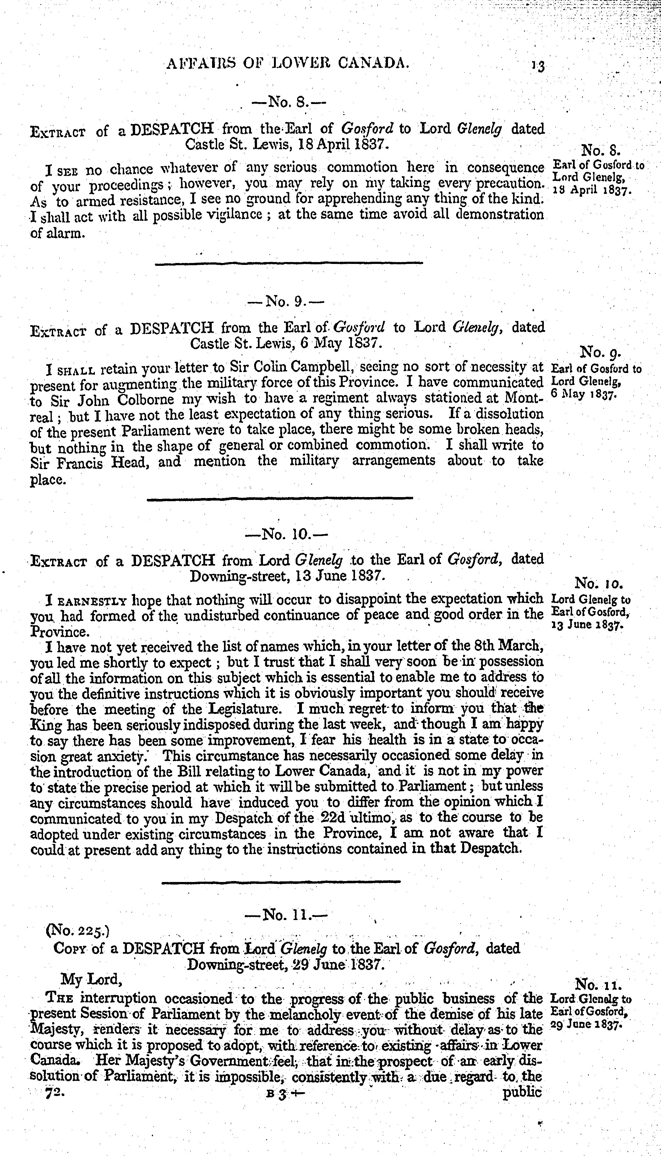 Despatches between the Governor-in-Chief of Canada, the Earl of Gosford, and the Colonial Secretary, Lord Glenelg.