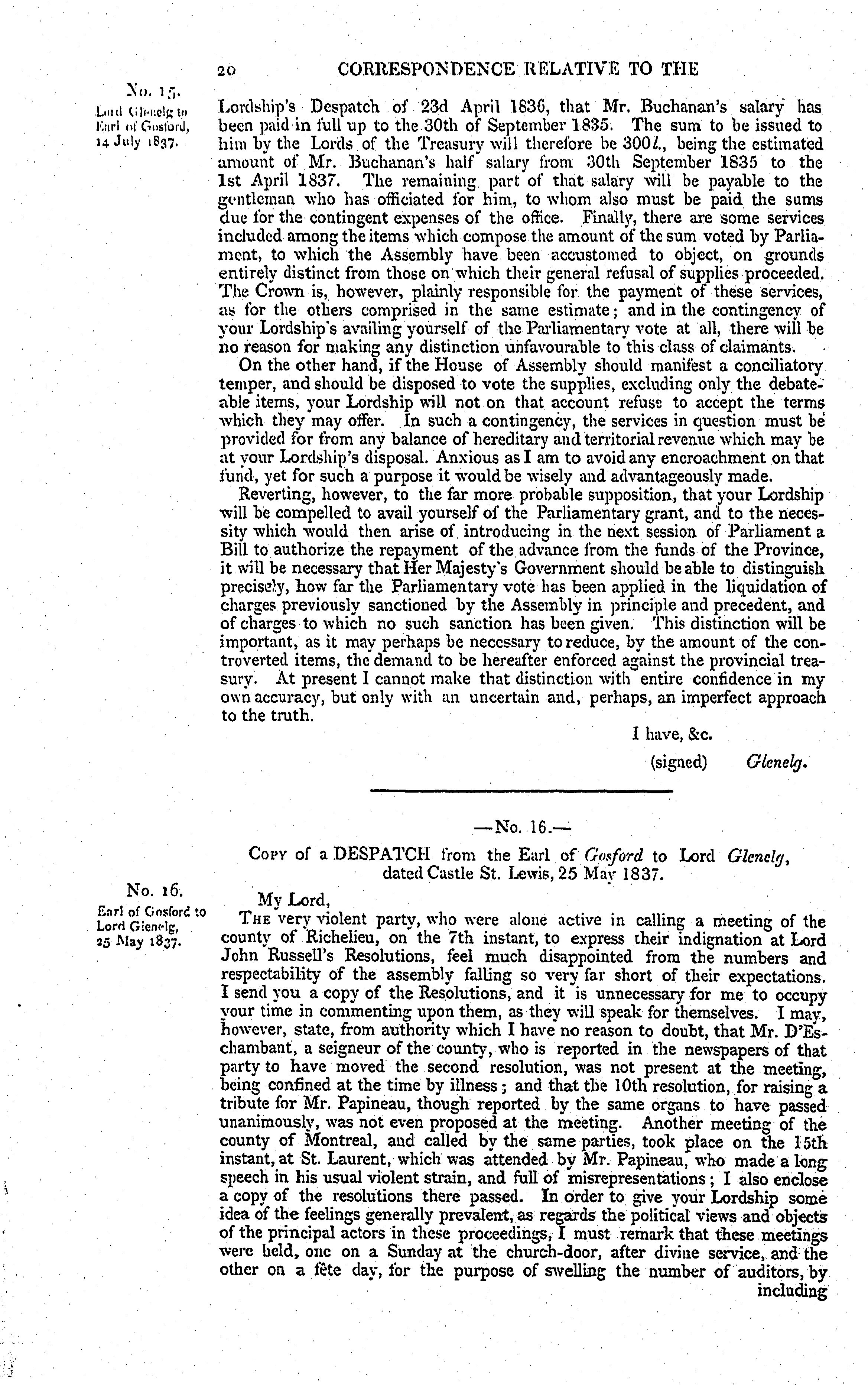 Despatches between the Governor-in-Chief of Canada, the Earl of Gosford, and the Colonial Secretary, Lord Glenelg.