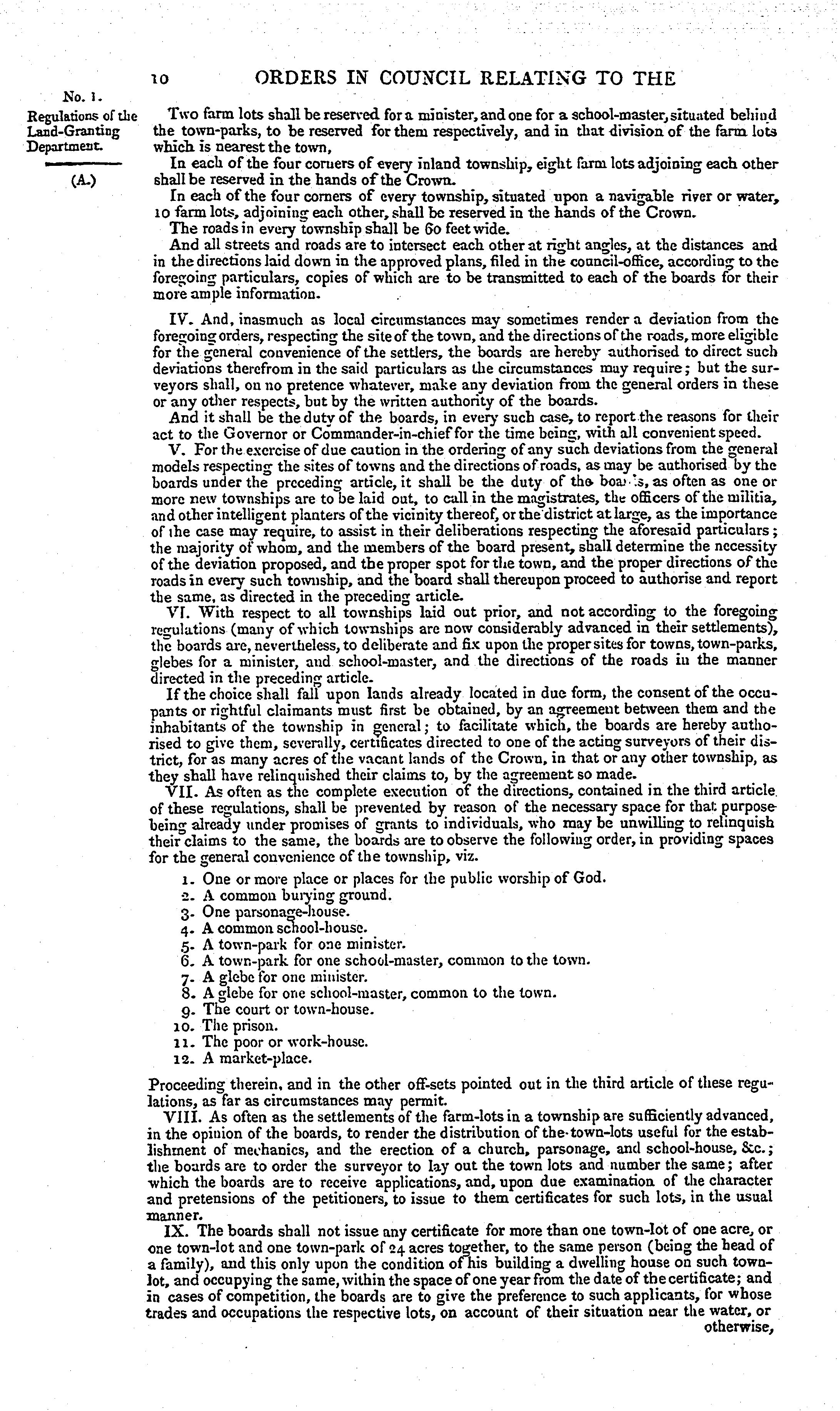 Running title: Orders in council relating to the sale of lands in Upper Canada.