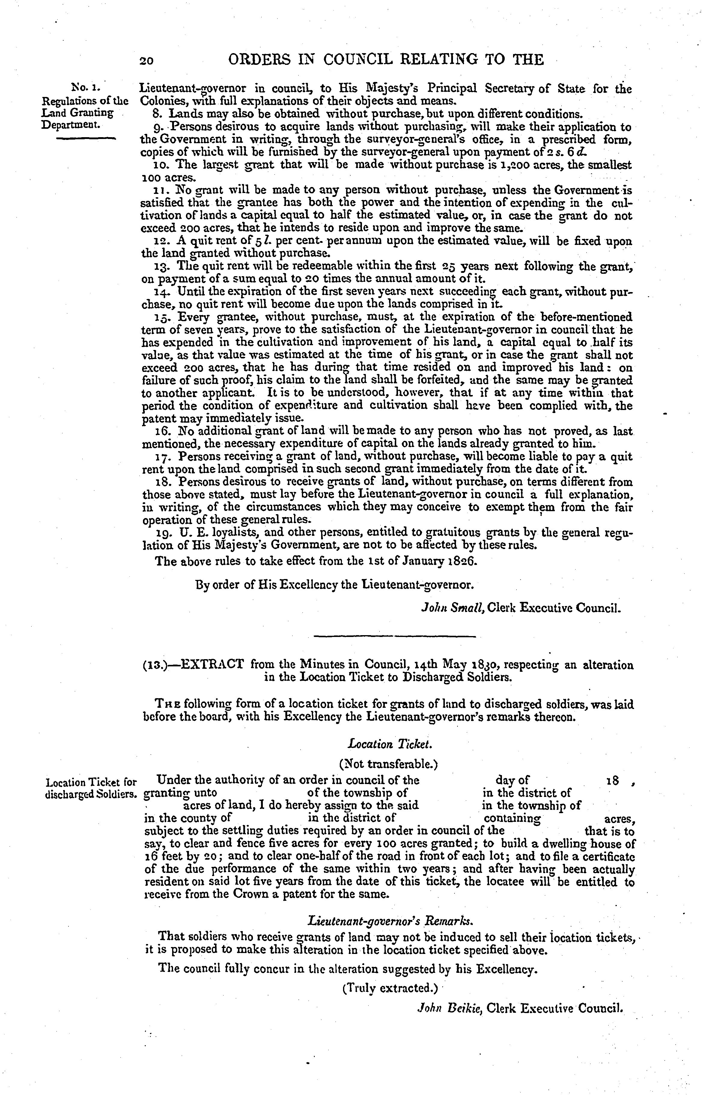 Orders in council relating to the sale of lands in Upper Canada