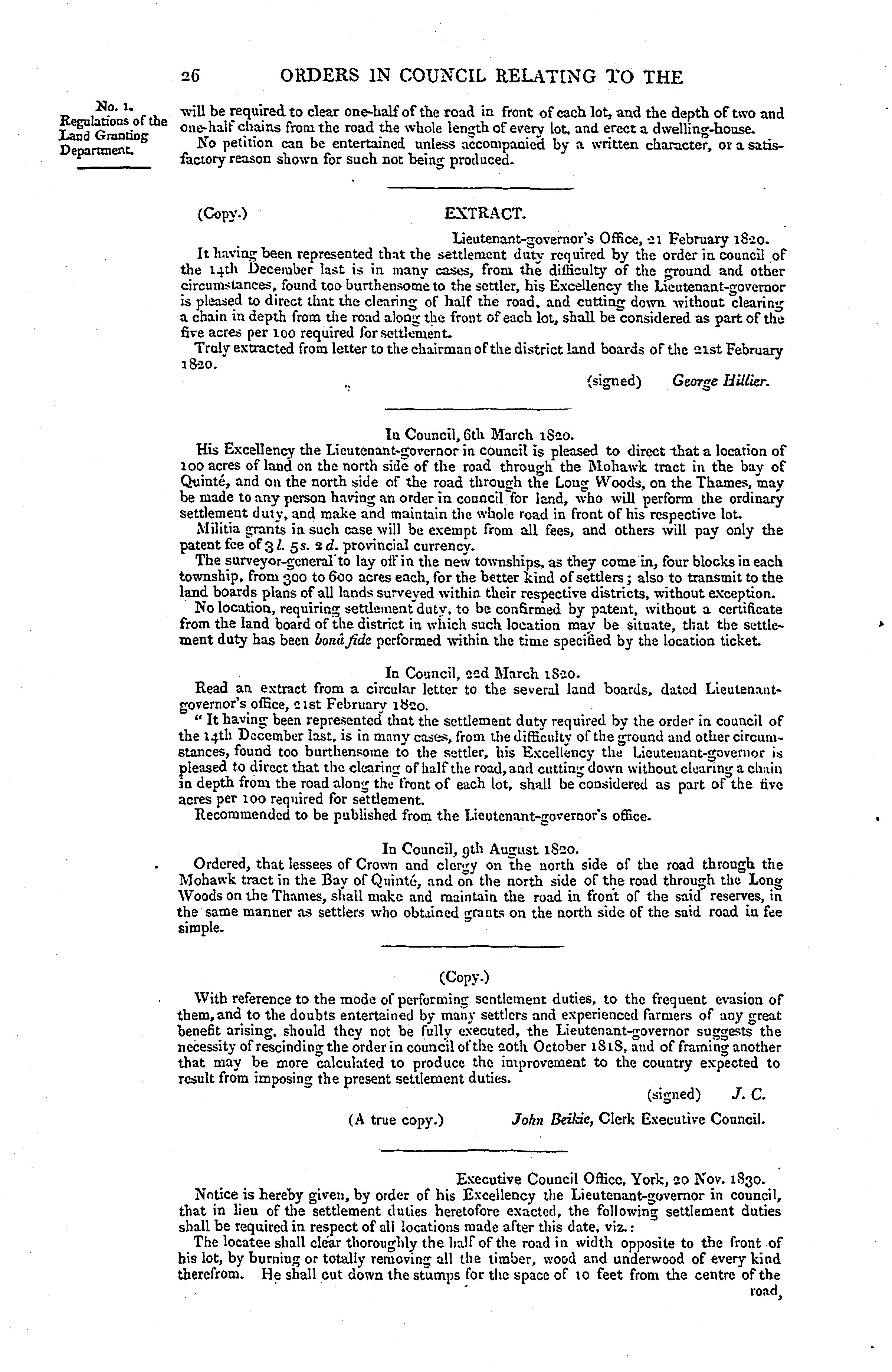 Orders in council relating to the sale of lands in Upper Canada