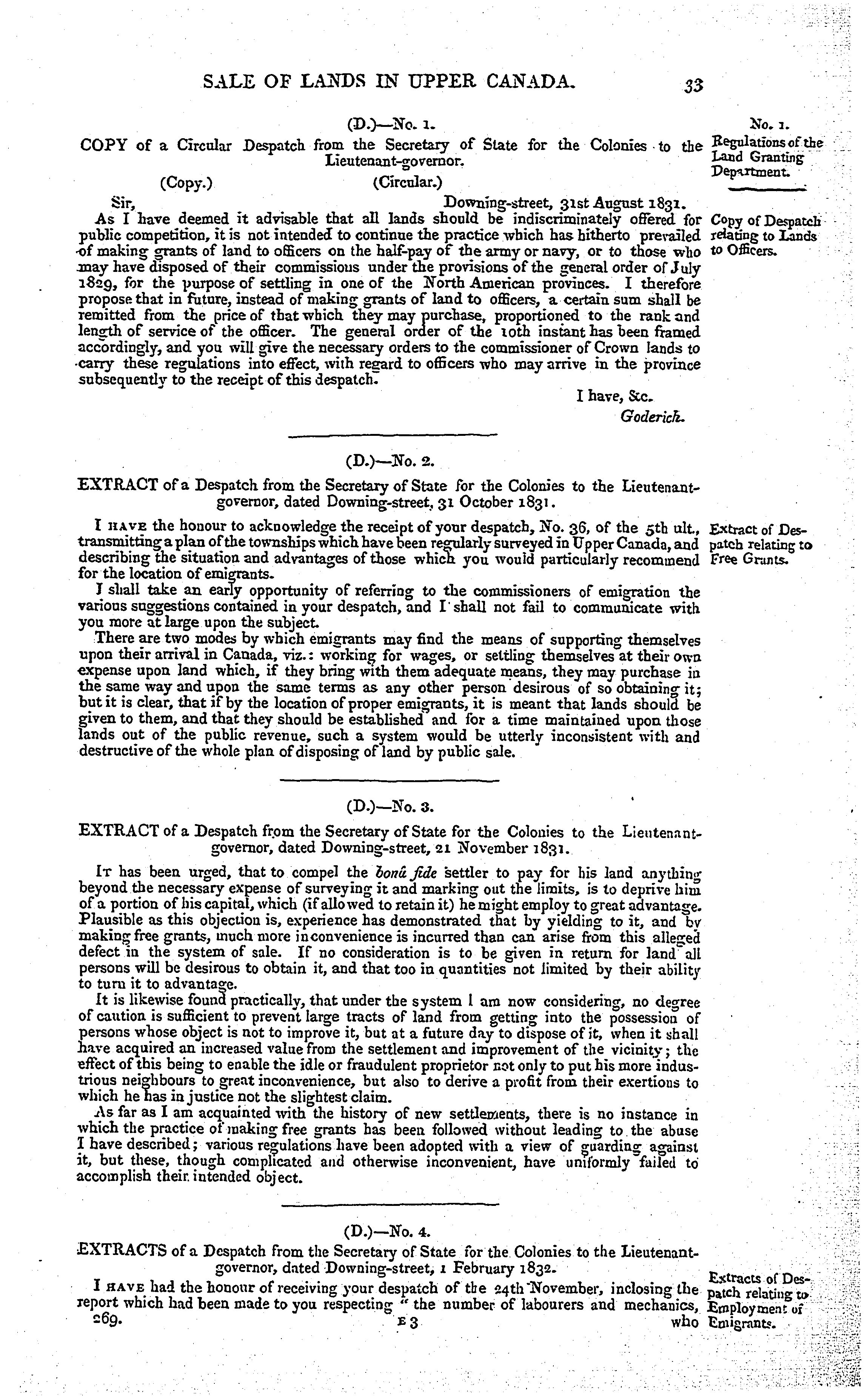 Orders in council relating to the sale of lands in Upper Canada