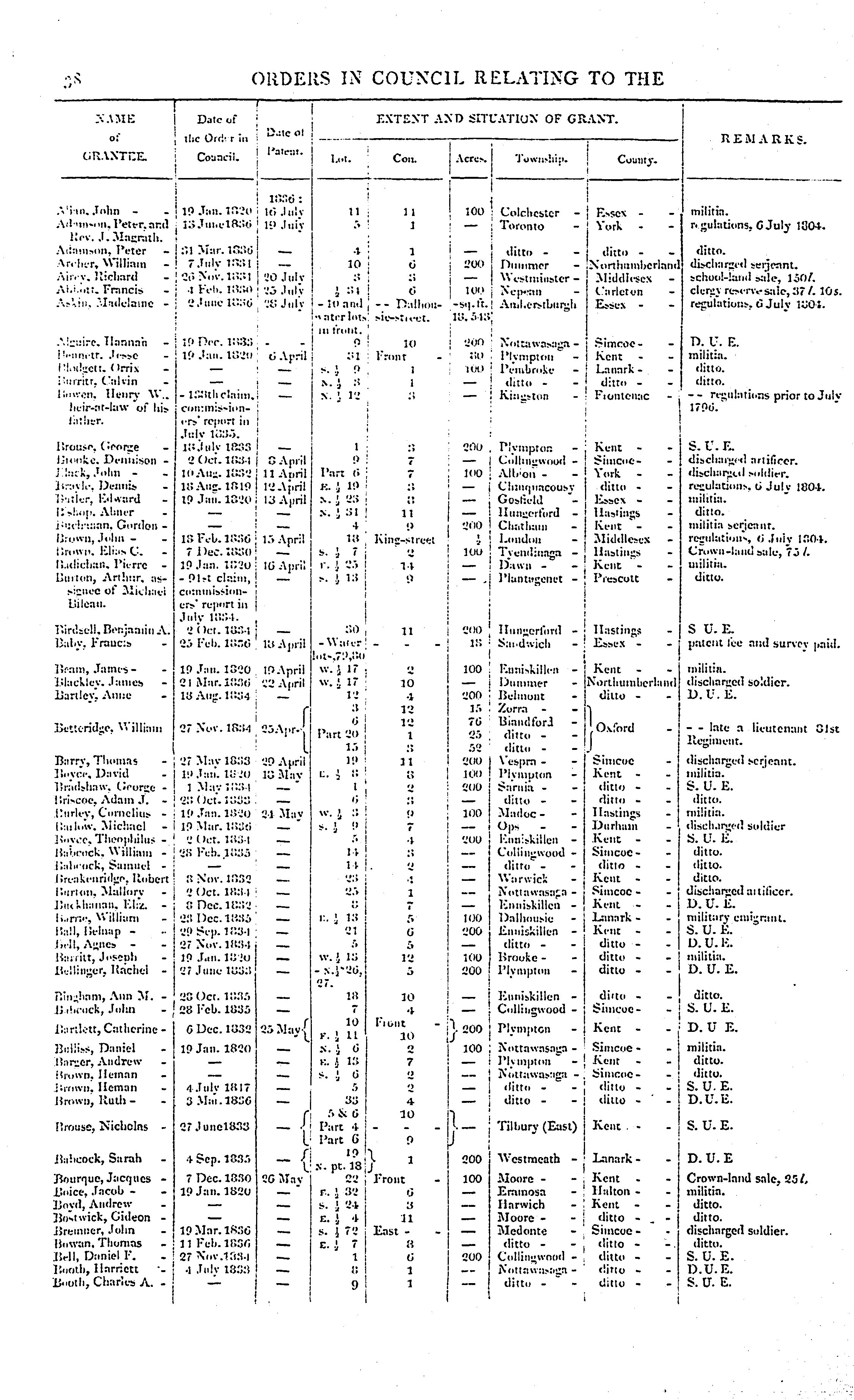 Orders in council relating to the sale of lands in Upper Canada