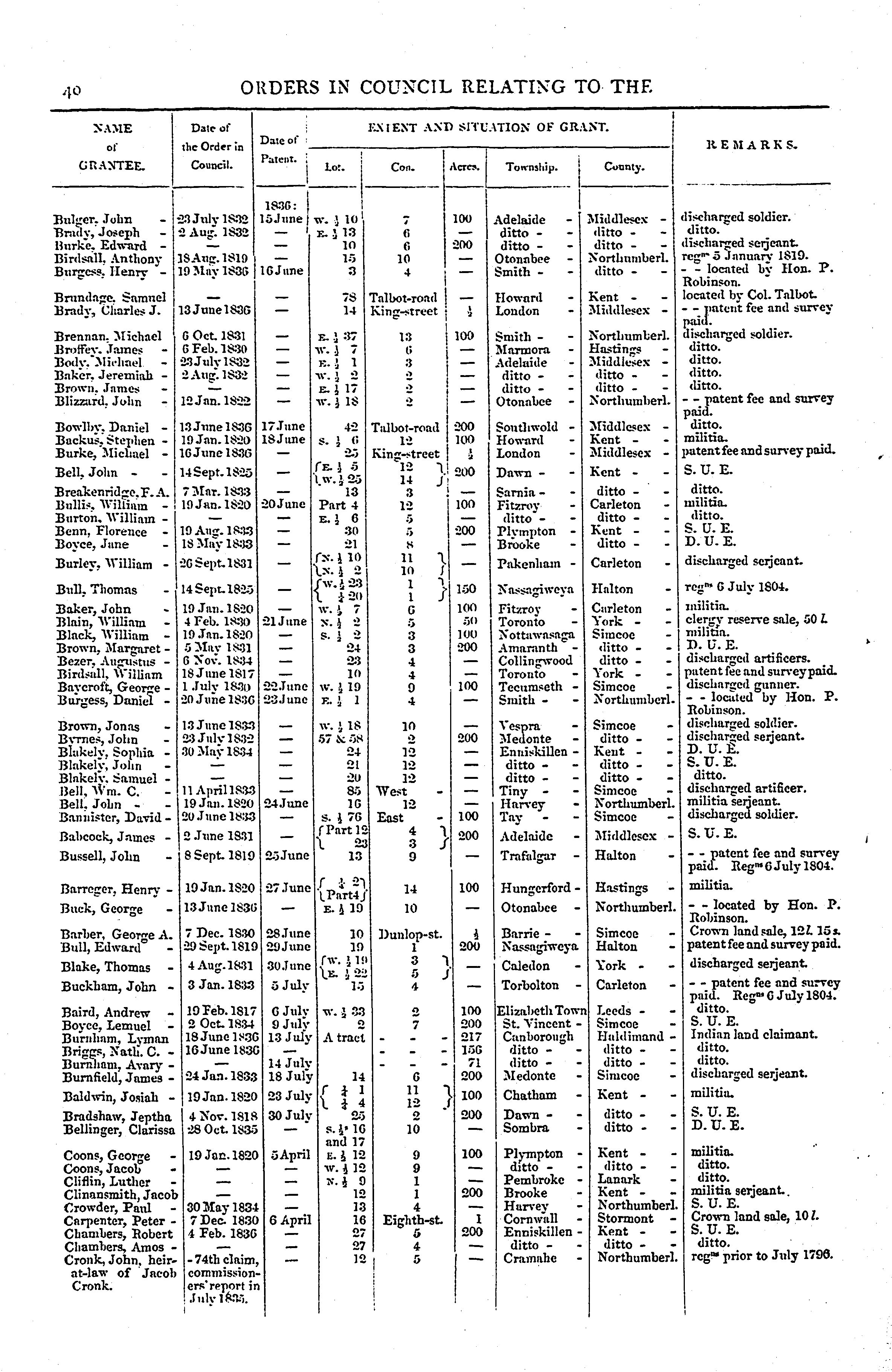 Orders in council relating to the sale of lands in Upper Canada