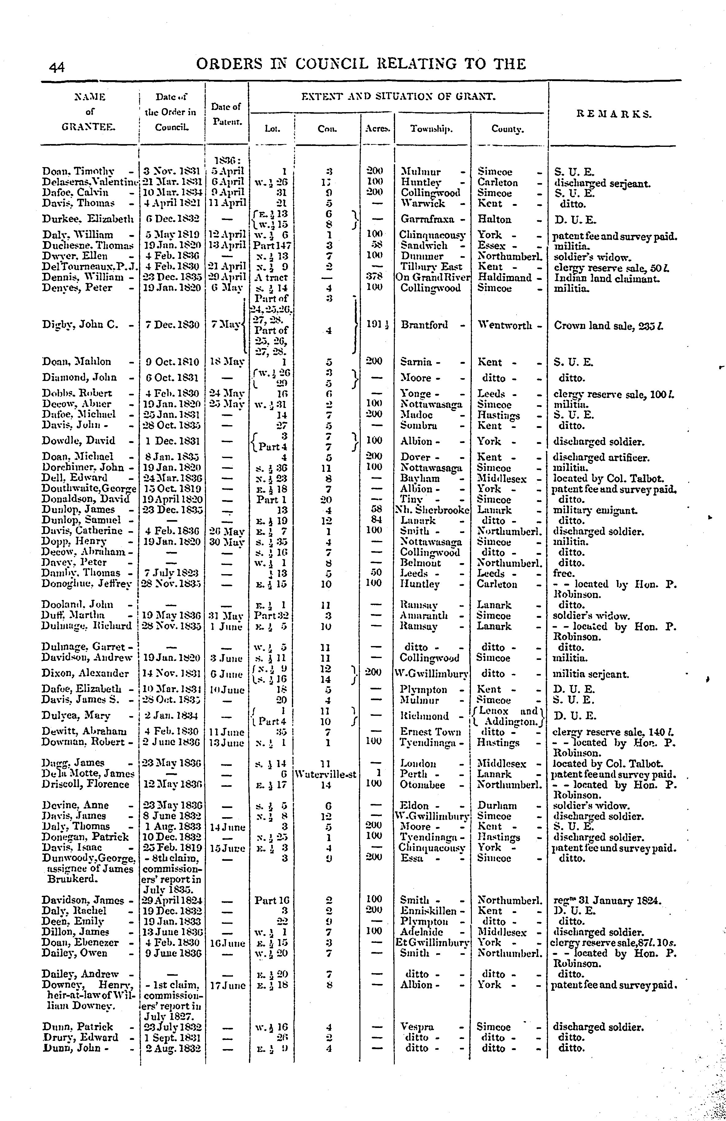 Orders in council relating to the sale of lands in Upper Canada