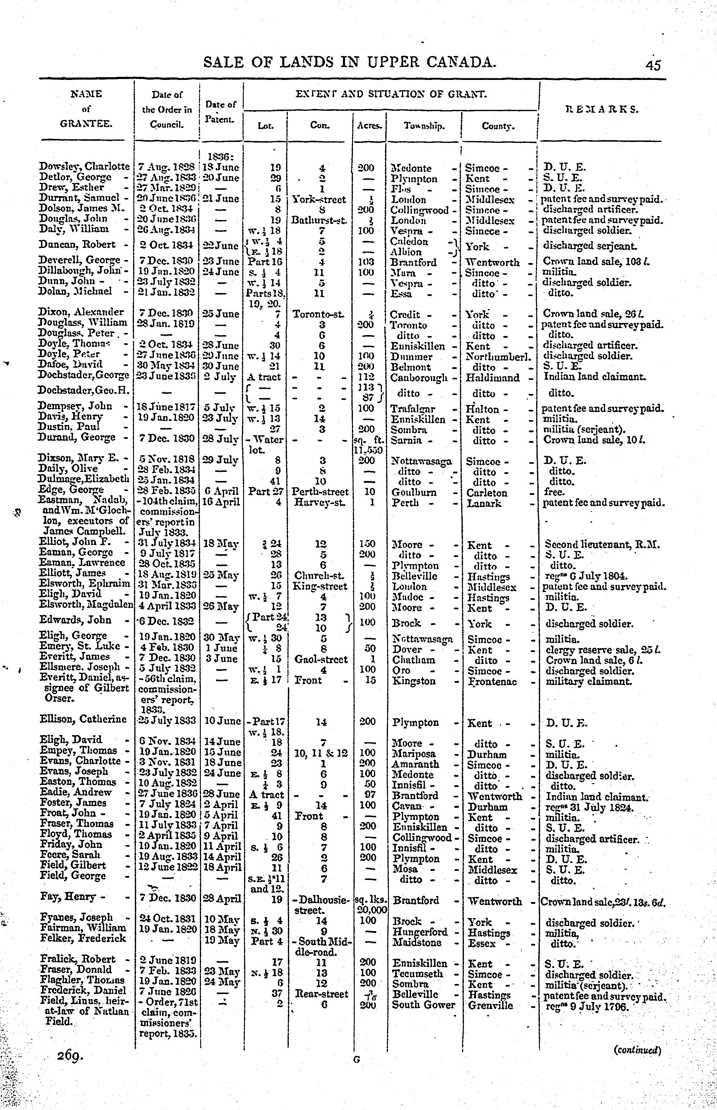 Orders in council and returns respecting the sale of lands in Upper Canada.