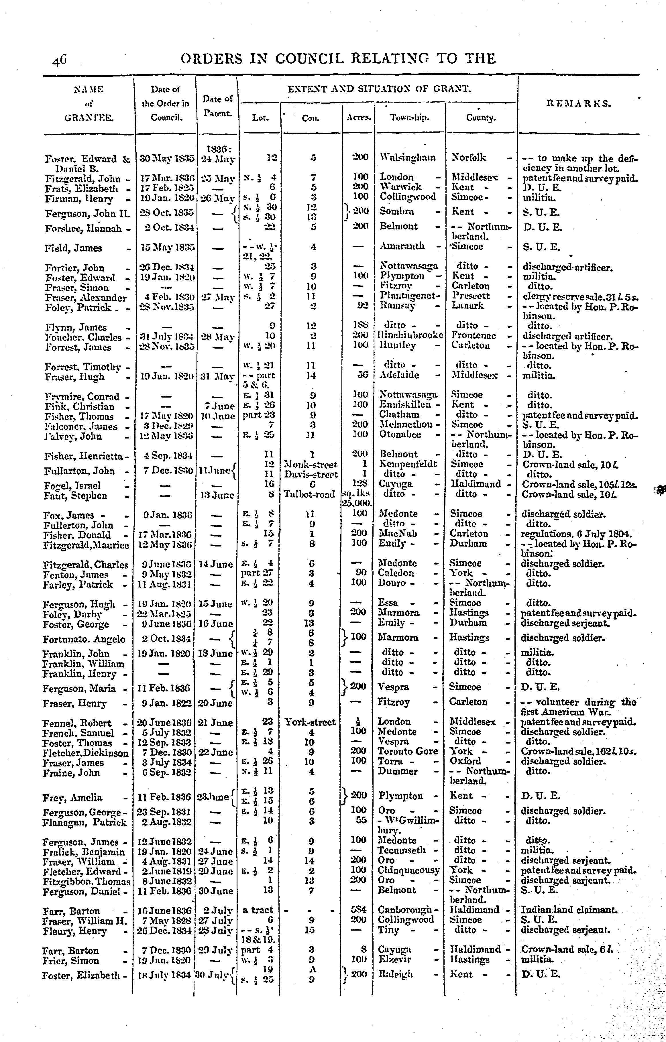 Orders in council relating to the sale of lands in Upper Canada