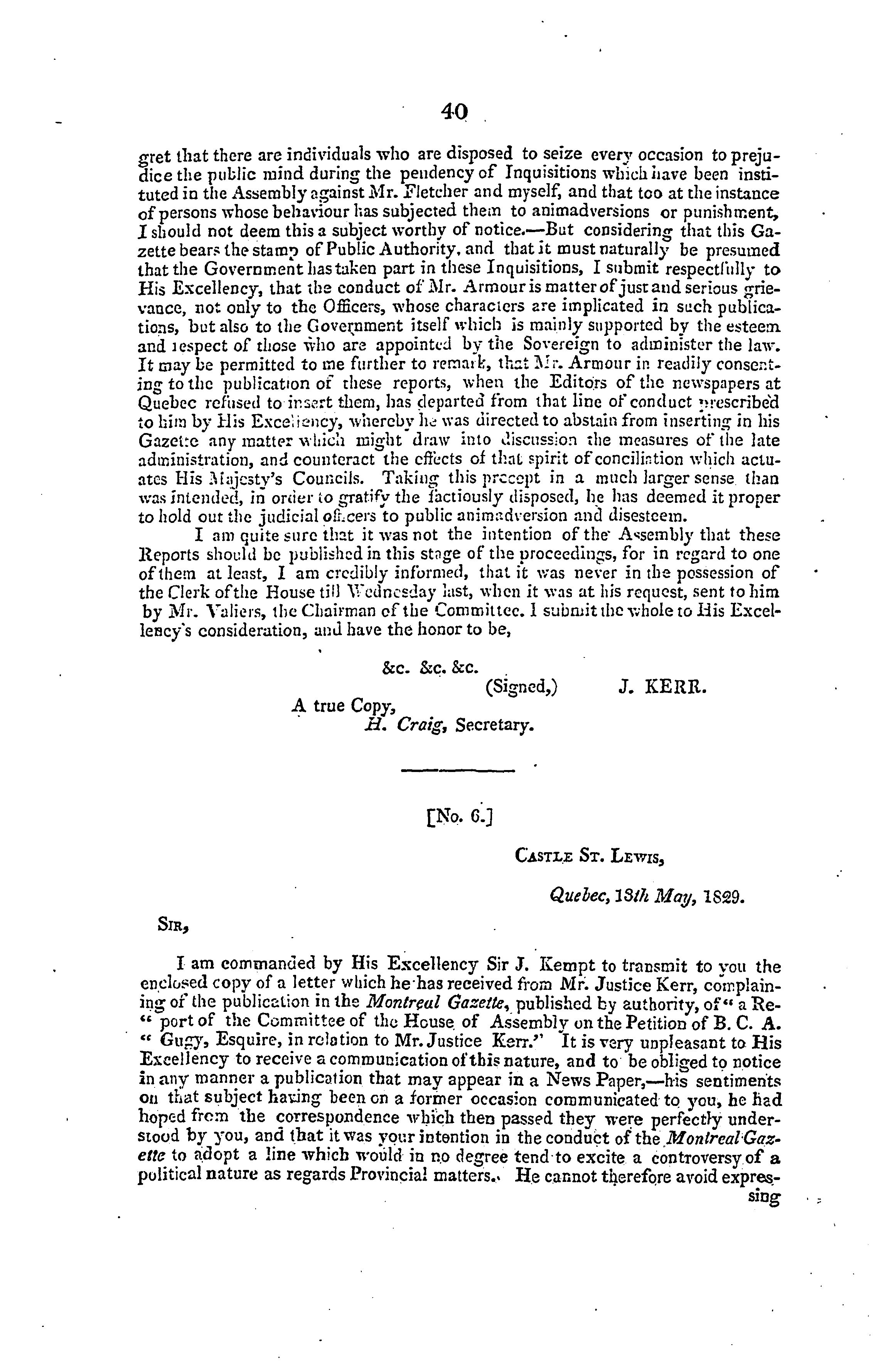 Half-title: Message : Aylmer, Governor in Chief, In compliance with the request of the House of Assembly of the 25th November, the Governor in Chief transmits copies of the correspondence required regardings the Honble. James Kerr, judge of the Court of Vice-Admiralty ... = Message : Aylmer, Gouverneur en Chef, Conformément à la demande contenue dans l'adresse de la Chambre d'assemblée du 25 novembre, le Gouverneur en Chef transmet des copies de la correspondance demandée touchant l'Honble. James Kerr ..., juge de la Cour de vice-amirauté ...