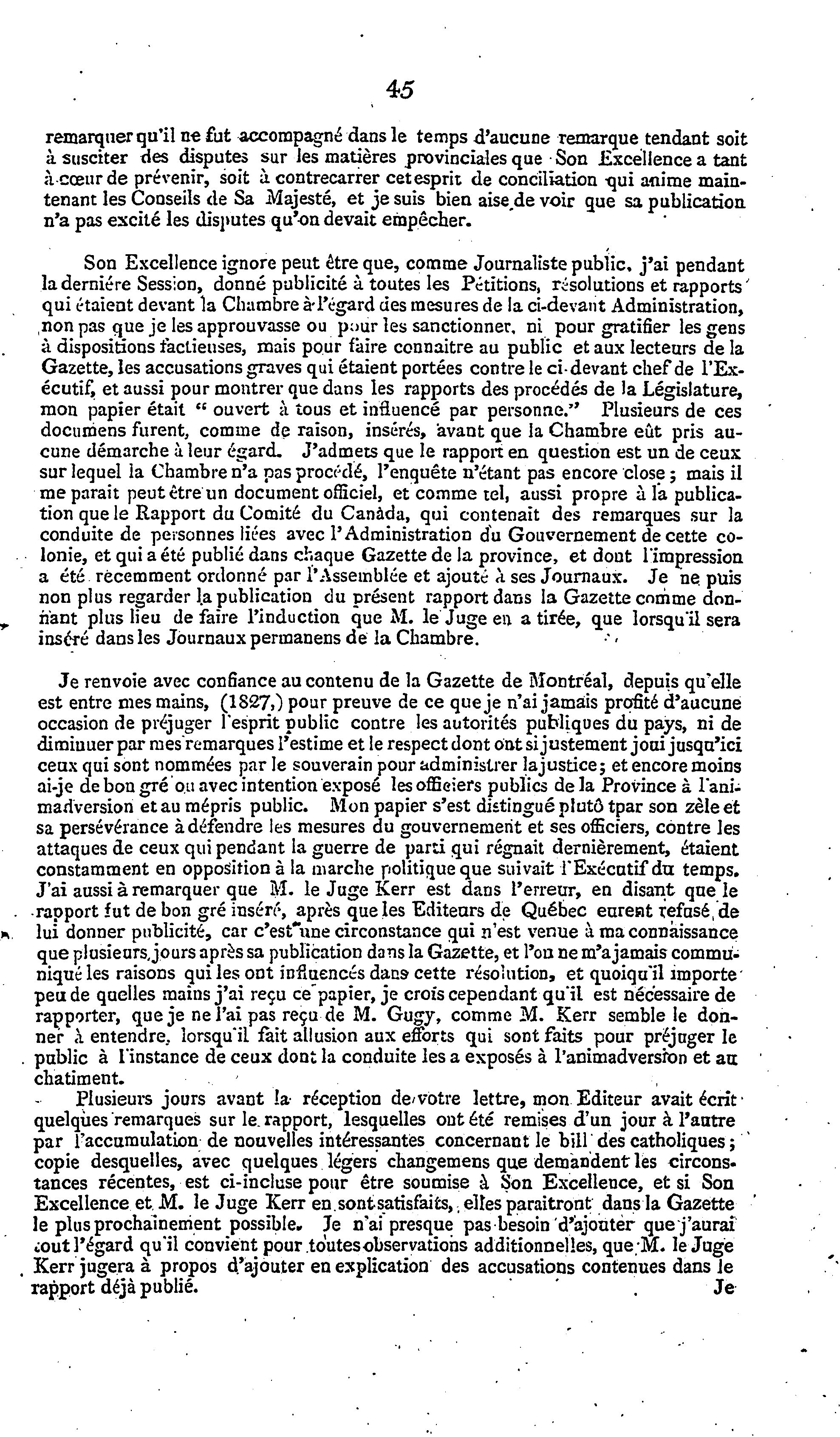 Half-title: Message : Aylmer, Governor in Chief, In compliance with the request of the House of Assembly of the 25th November, the Governor in Chief transmits copies of the correspondence required regardings the Honble. James Kerr, judge of the Court of Vice-Admiralty ... = Message : Aylmer, Gouverneur en Chef, Conformément à la demande contenue dans l'adresse de la Chambre d'assemblée du 25 novembre, le Gouverneur en Chef transmet des copies de la correspondance demandée touchant l'Honble. James Kerr ..., juge de la Cour de vice-amirauté ...