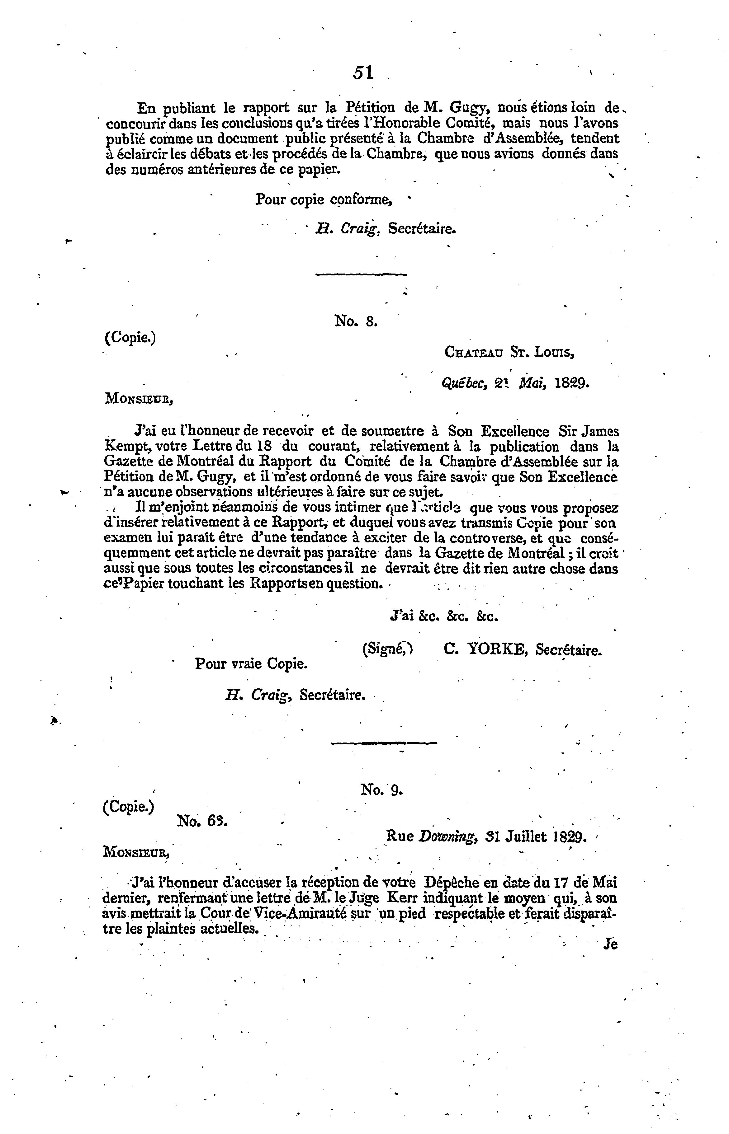 Half-title: Message : Aylmer, Governor in Chief, In compliance with the request of the House of Assembly of the 25th November, the Governor in Chief transmits copies of the correspondence required regardings the Honble. James Kerr, judge of the Court of Vice-Admiralty ... = Message : Aylmer, Gouverneur en Chef, Conformément à la demande contenue dans l'adresse de la Chambre d'assemblée du 25 novembre, le Gouverneur en Chef transmet des copies de la correspondance demandée touchant l'Honble. James Kerr ..., juge de la Cour de vice-amirauté ...