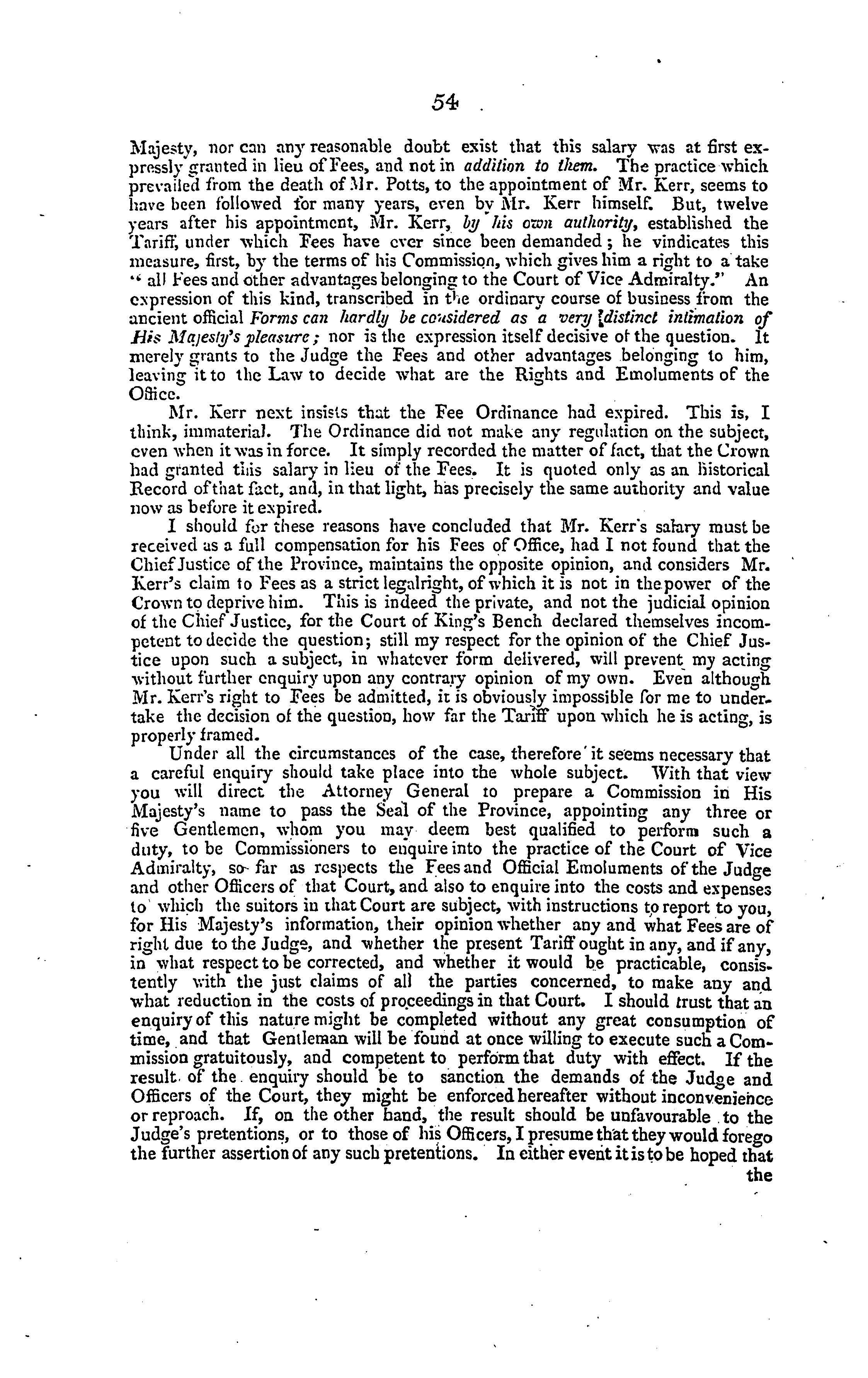 Message : Aylmer, Governor in Chief, In compliance with the request contained in the address of the House of Assembly of the 25th November, the Governor in Chief transmits copies of the correspondence required respecting the Honble. James Kerr, Esquire, judge of the Court of Vice- Admiralty ...