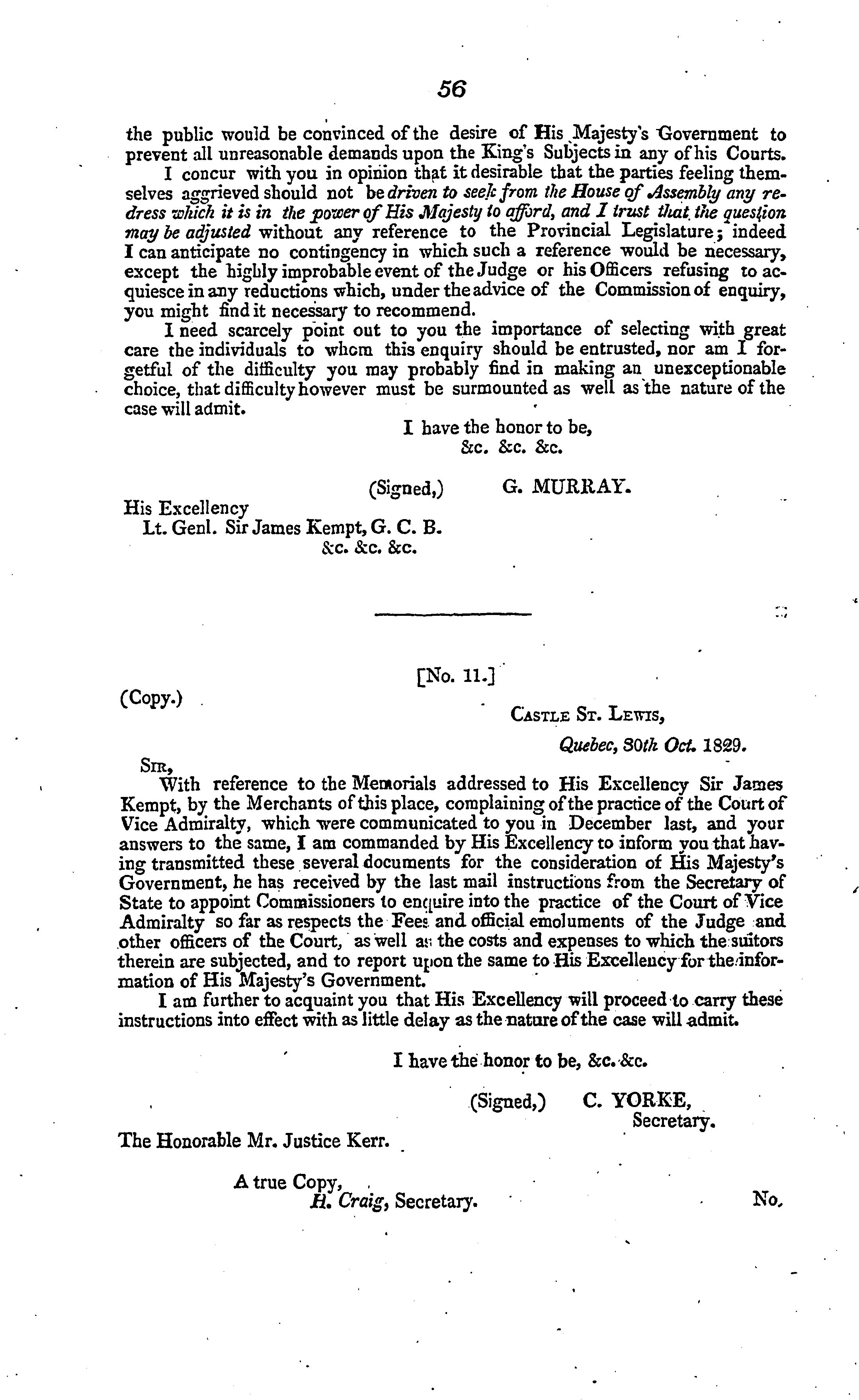 Message : Aylmer, Governor in Chief, In compliance with the request contained in the address of the House of Assembly of the 25th November, the Governor in Chief transmits copies of the correspondence required respecting the Honble. James Kerr, Esquire, judge of the Court of Vice- Admiralty ...